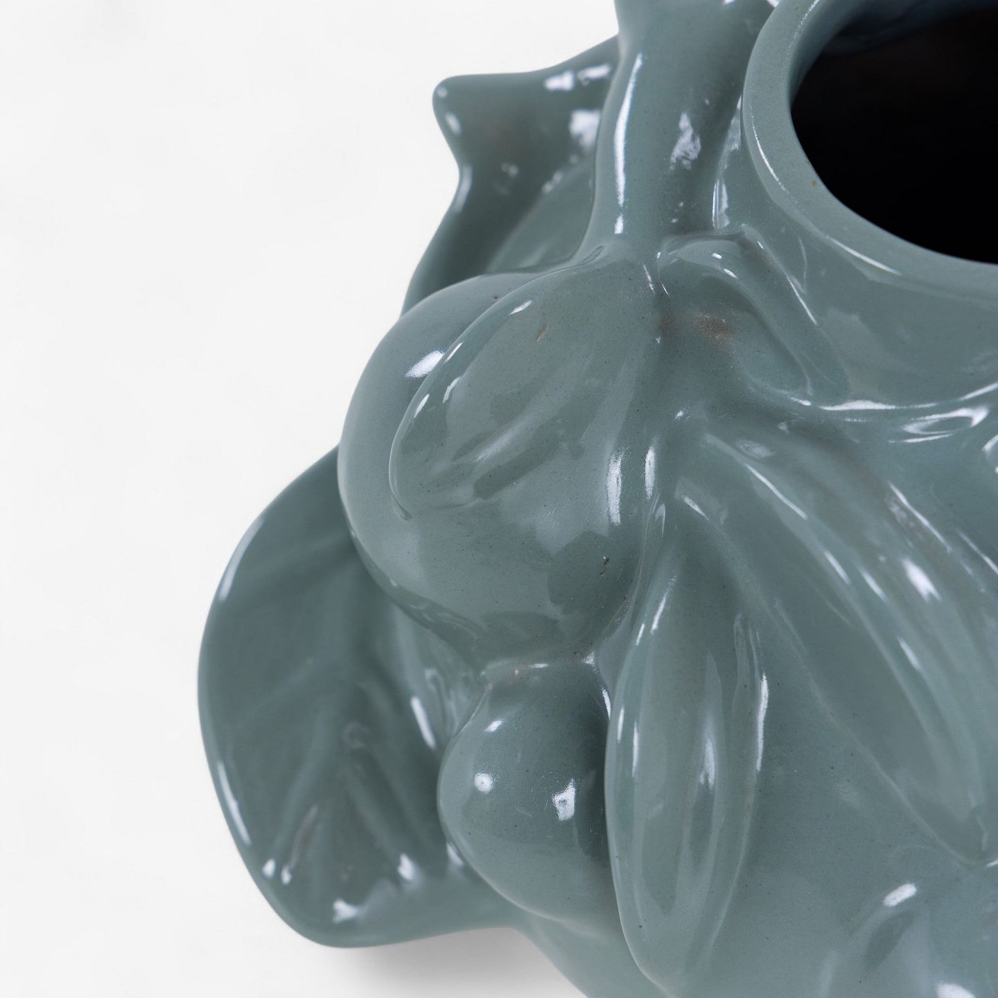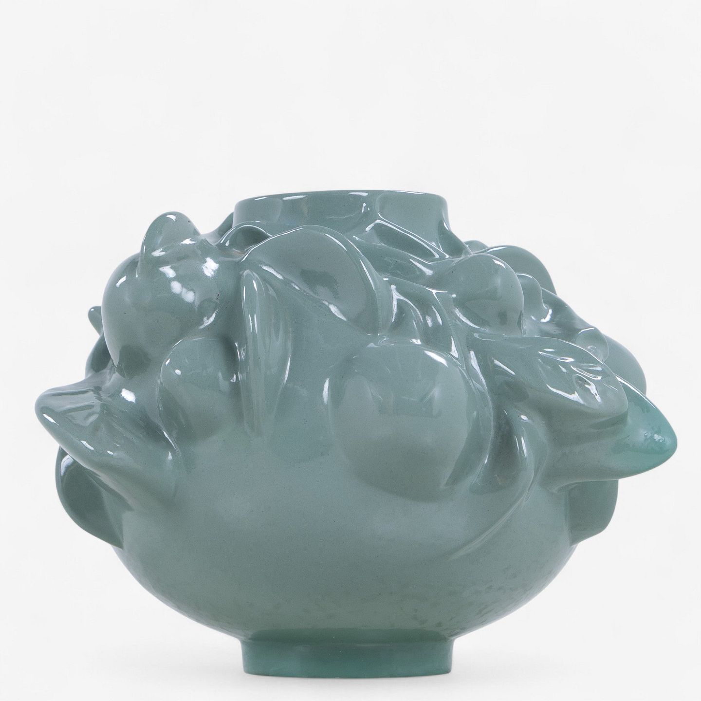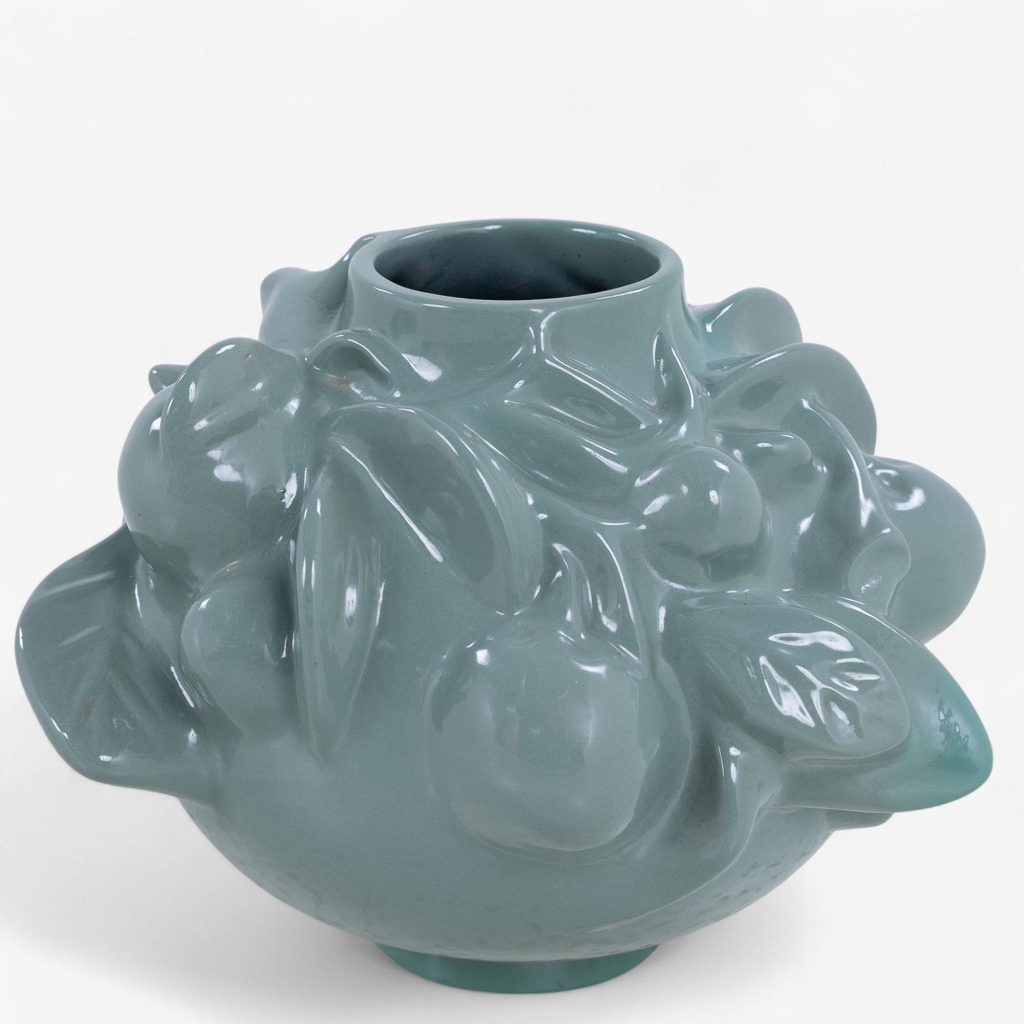 Vase i glaseret terrakotta i spirende stil og med frugtmotiver. Signeret.