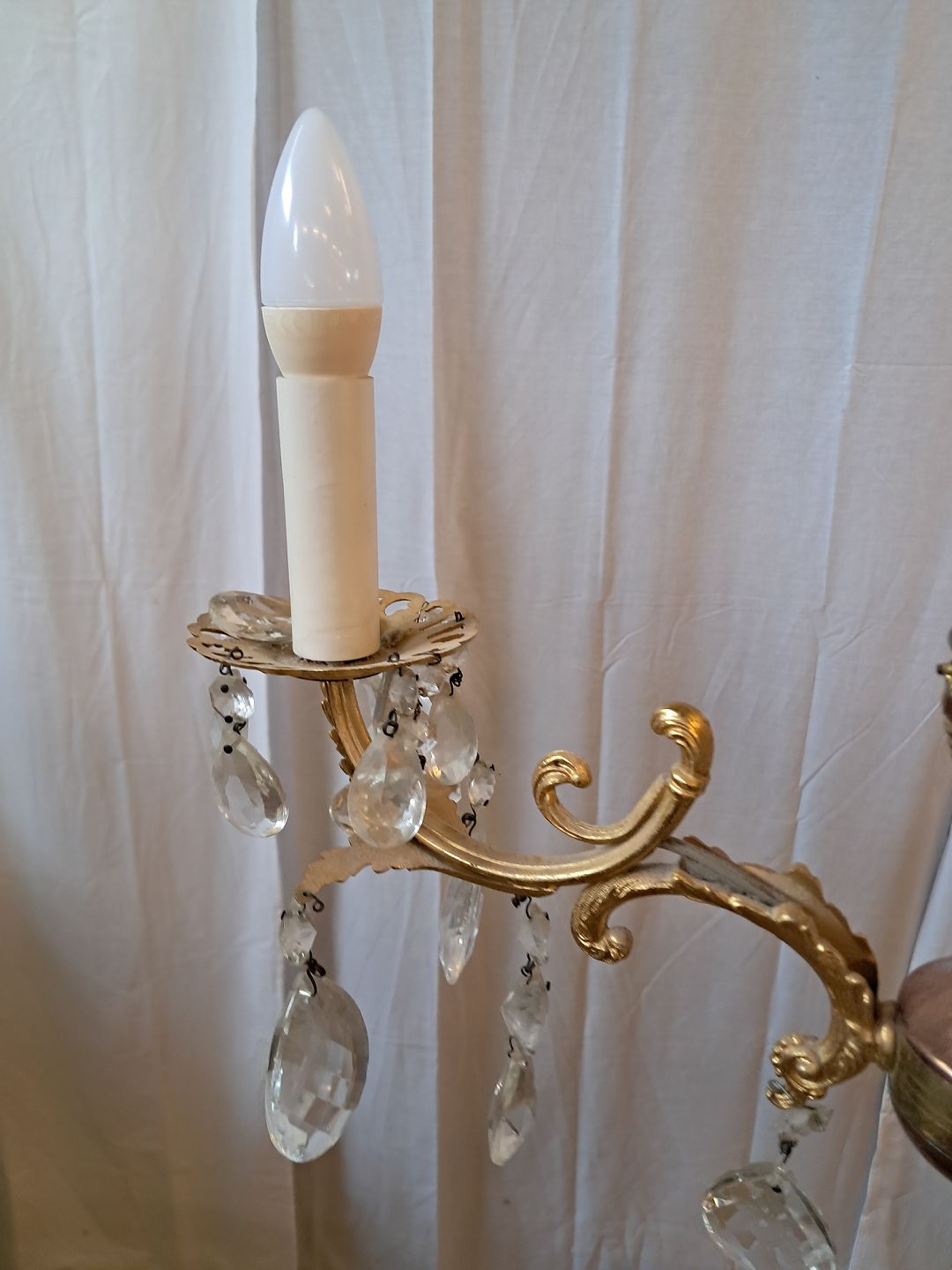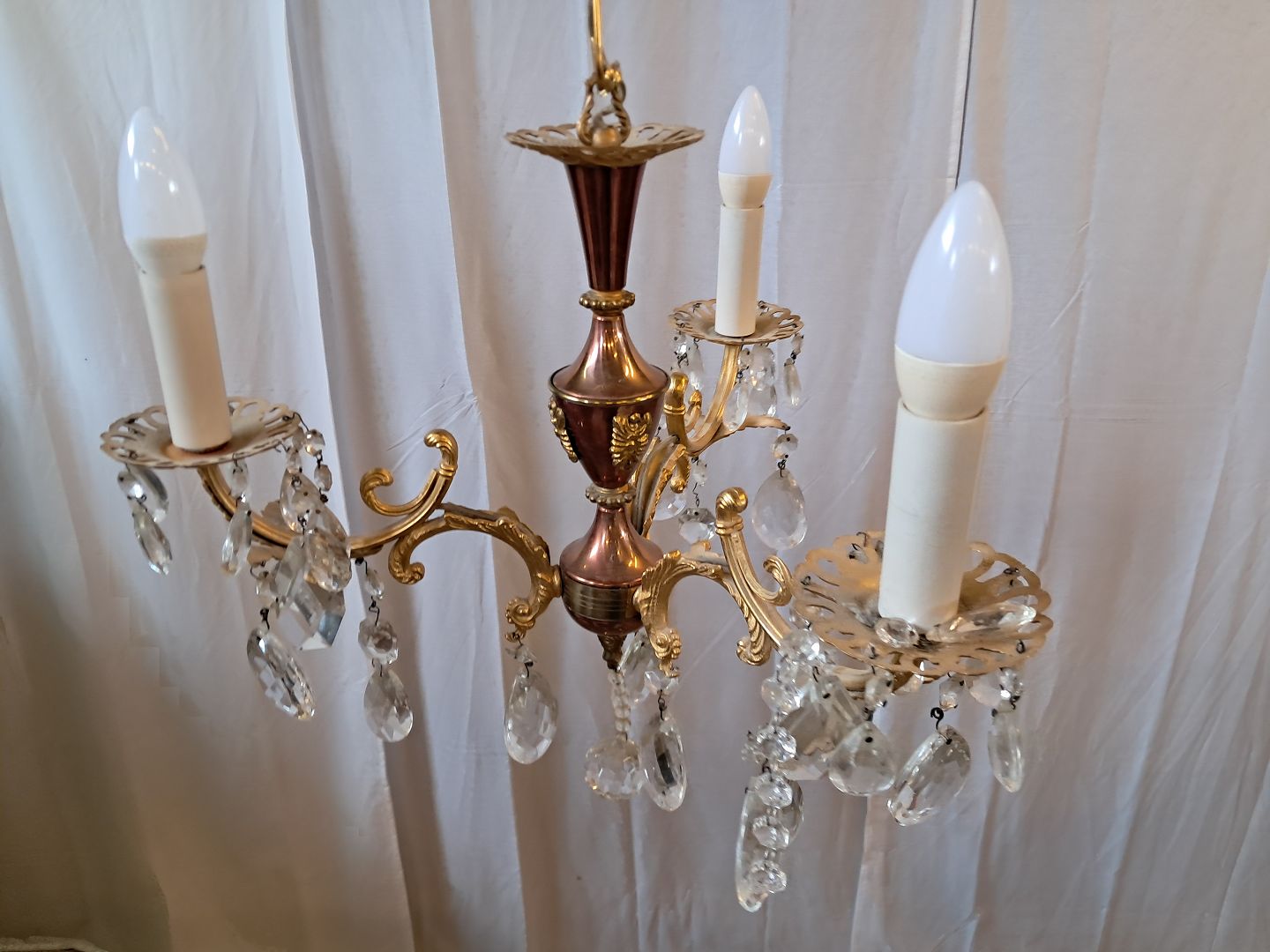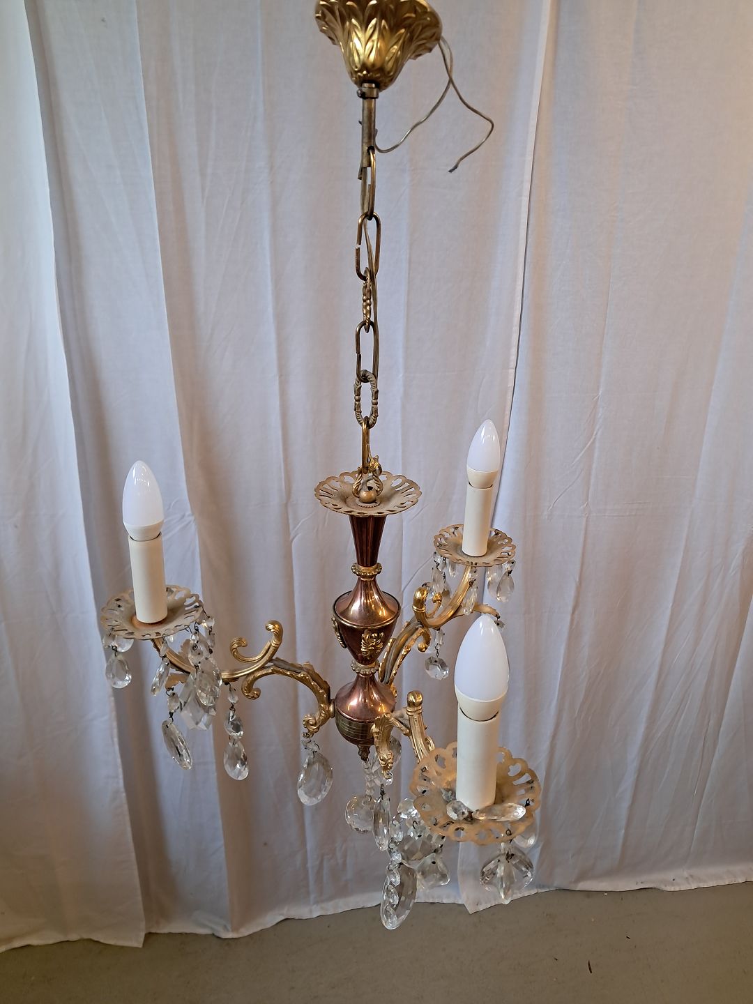 Lille prismekrone i metal og glas, fra 1980erne.