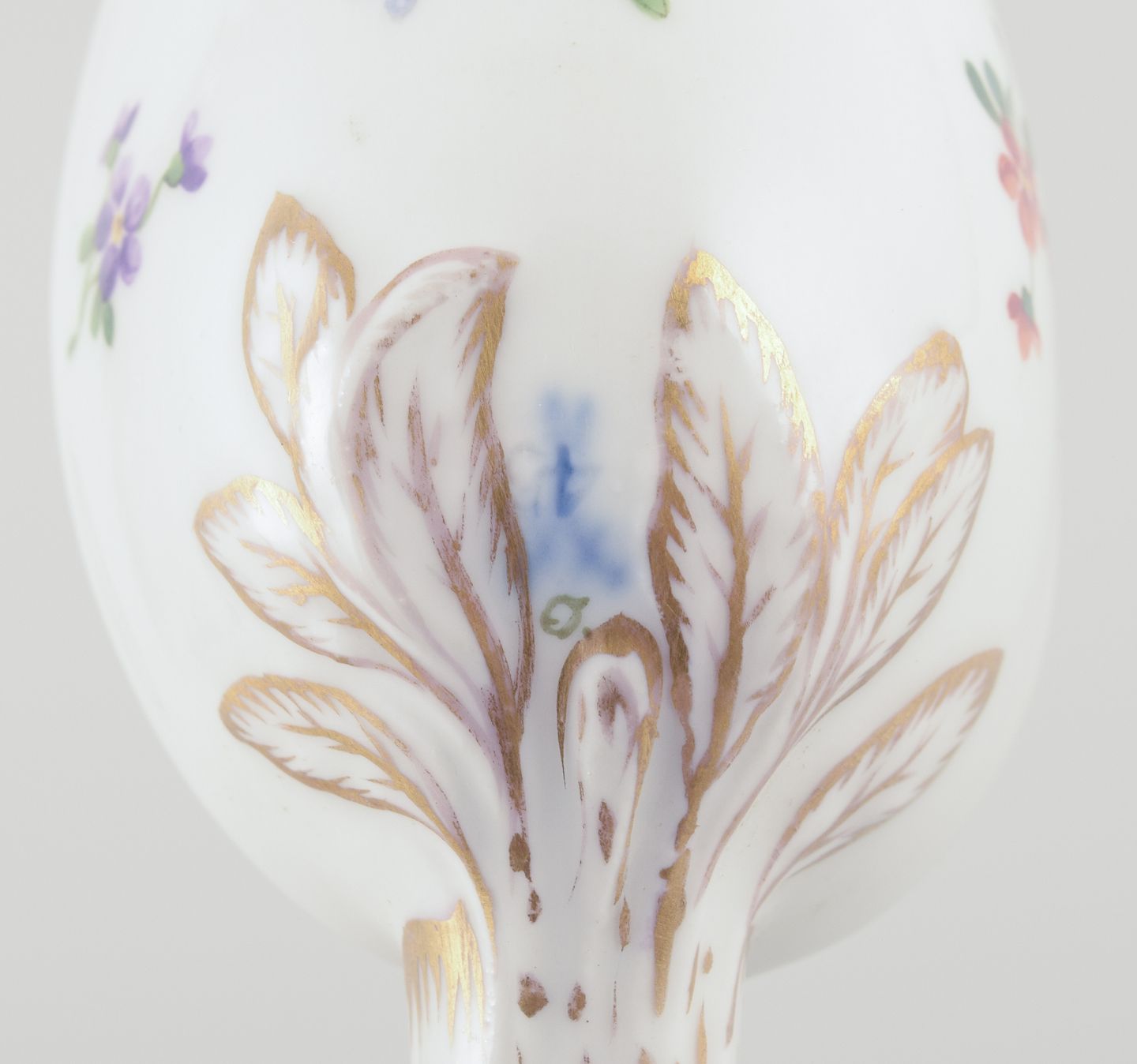 Hand-decorated with polychrome floral motifs and gold decoration.