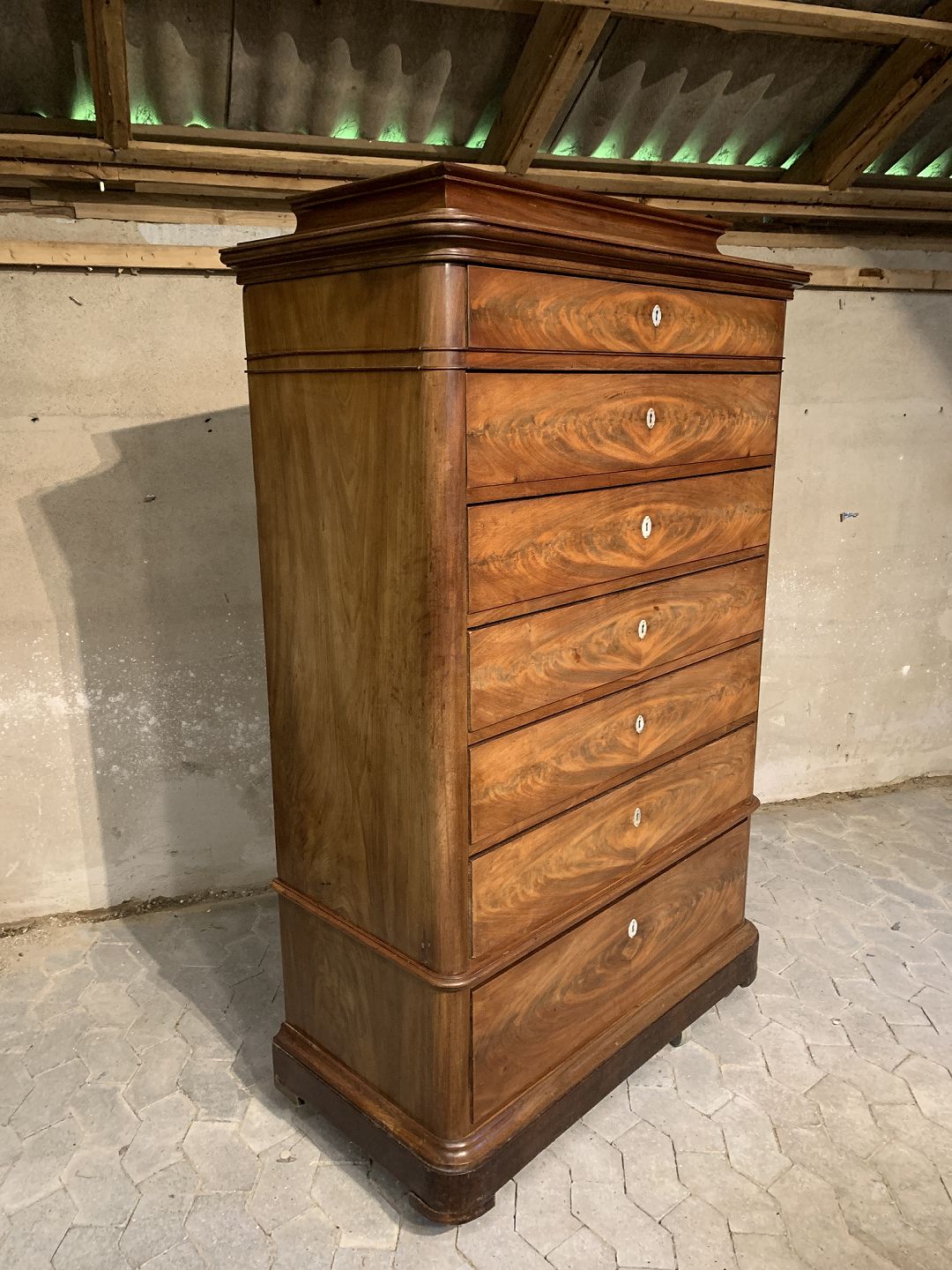 Stor kommode i fineret mahogni, fra 1890erne.