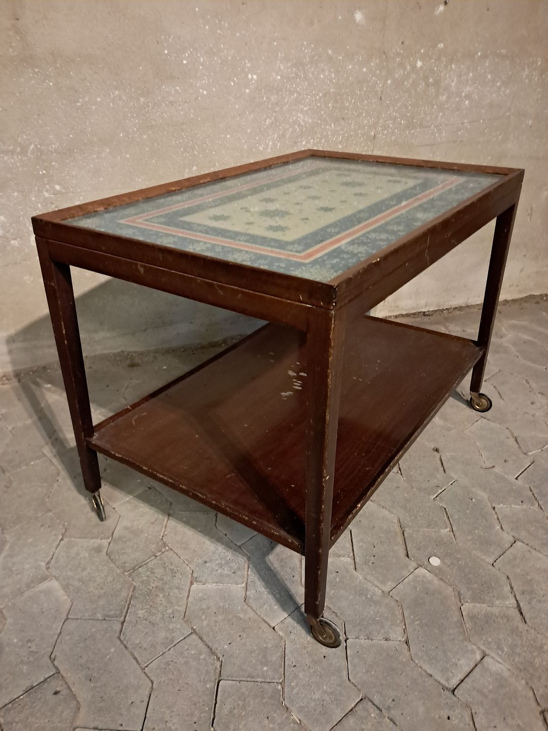 Bord i bøgetræ med glasplade, fra 1950erne.