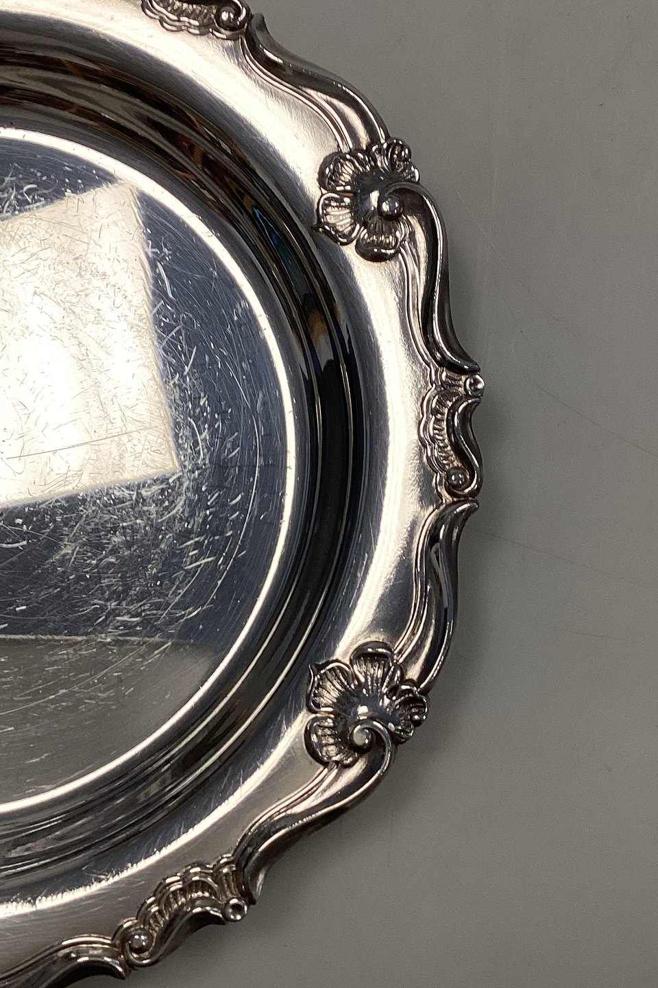 Dansk ATLA Sølvplet Flaske Bakke. Kant dekoreret med blomster. Måler 13,5 cm / 5,32 inches
