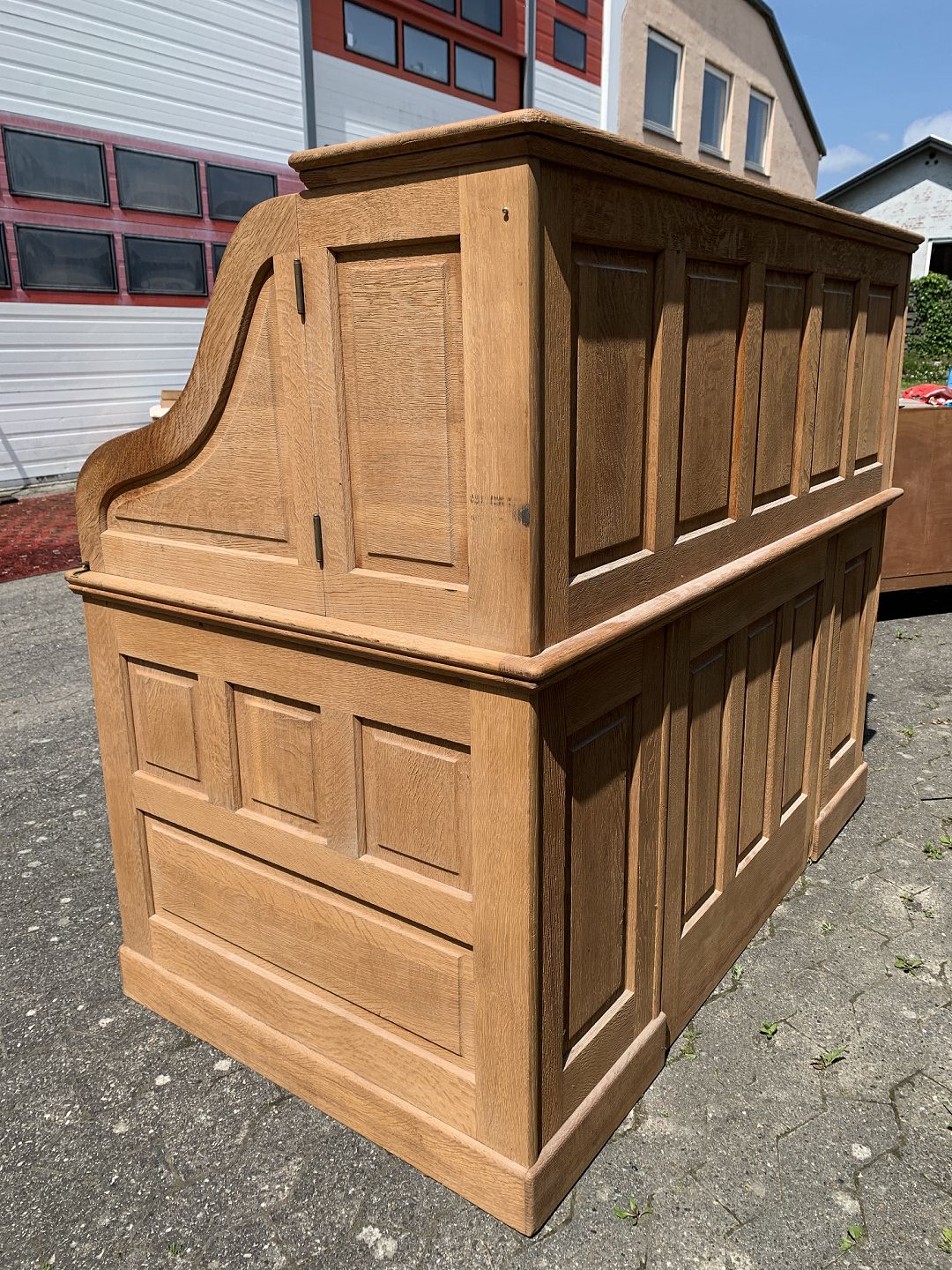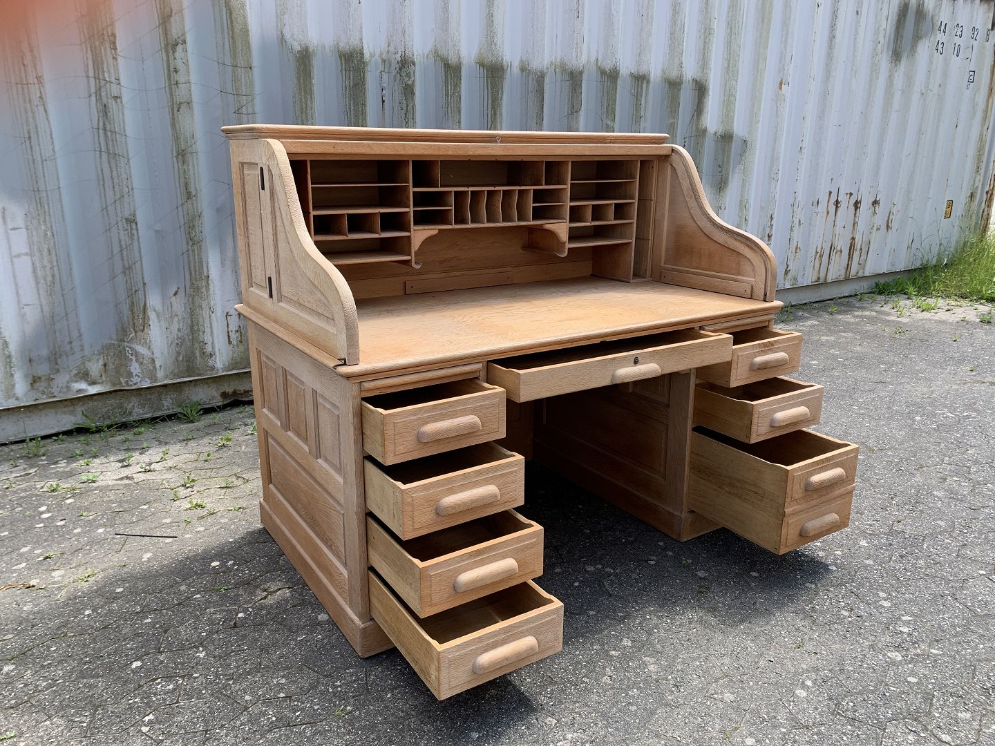 Text available in Danish: Amrikansk skrivebord i massivt egetræ, fra 1920erne.