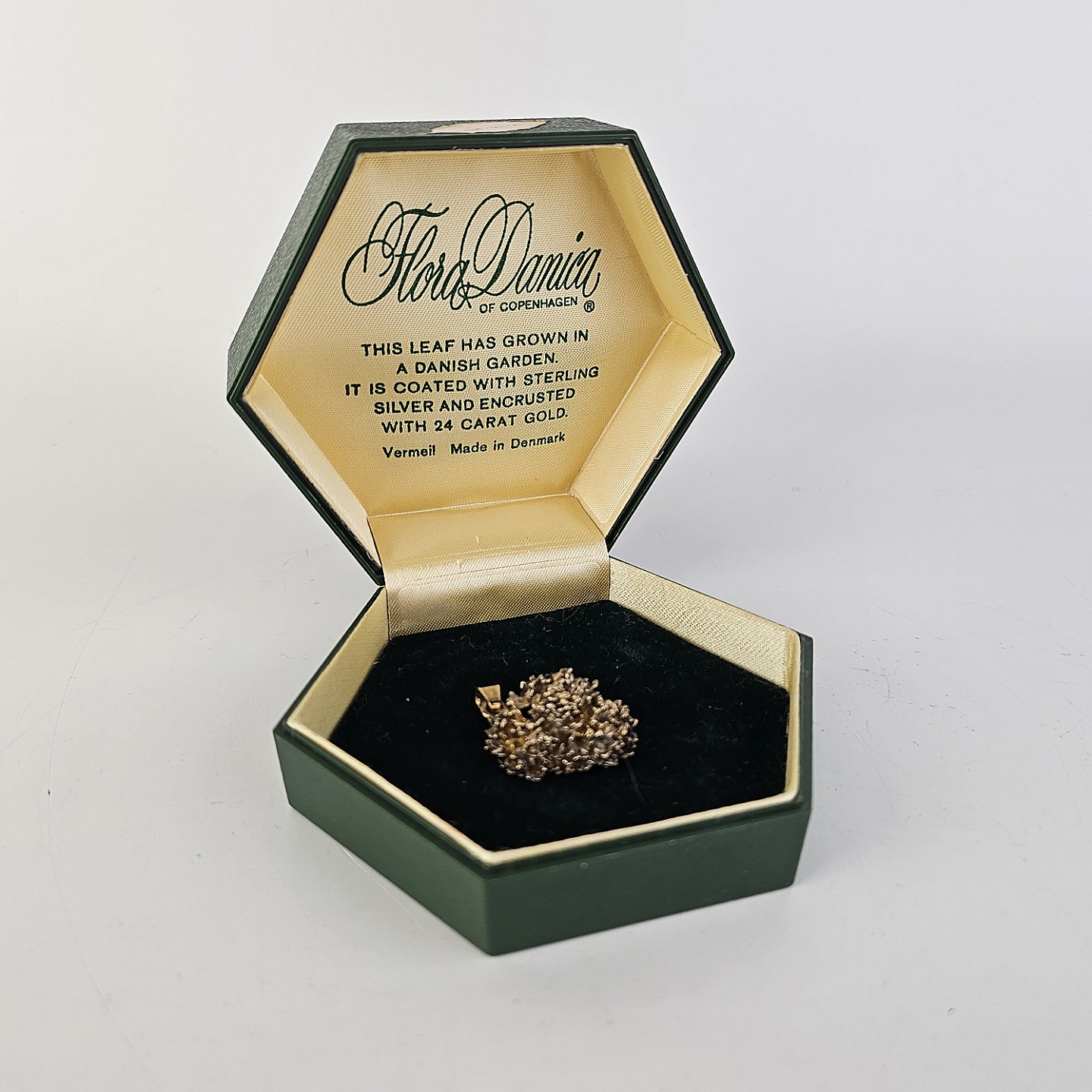 Vedhæng til halskæde, af forgyldt sølv, med motiv af buket persille.