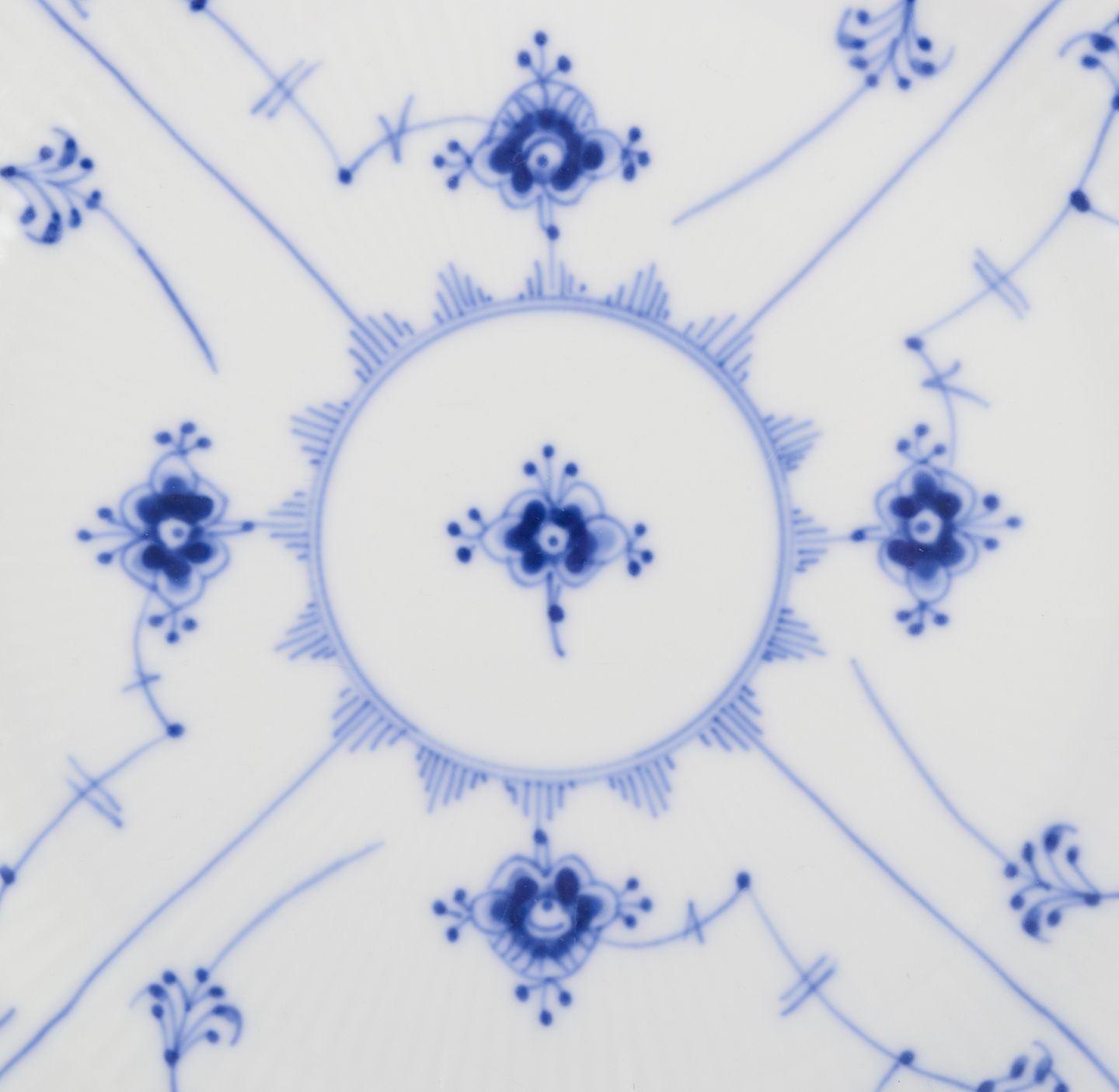 Musselmalet (also known as “Blue Fluted”) is a classic porcelain pattern from Royal Copenhagen, first introduced in 1775. Inspired by Asian porcelain, it is characterized by its blue hand-painted decorations on a white background. The pattern comes in several versions, including Full Lace, Half Lace, and Plain (Blue Fluted Plain). Musselmalet is an iconic symbol of Danish design and craftsmanship and remains popular and in production to this day.