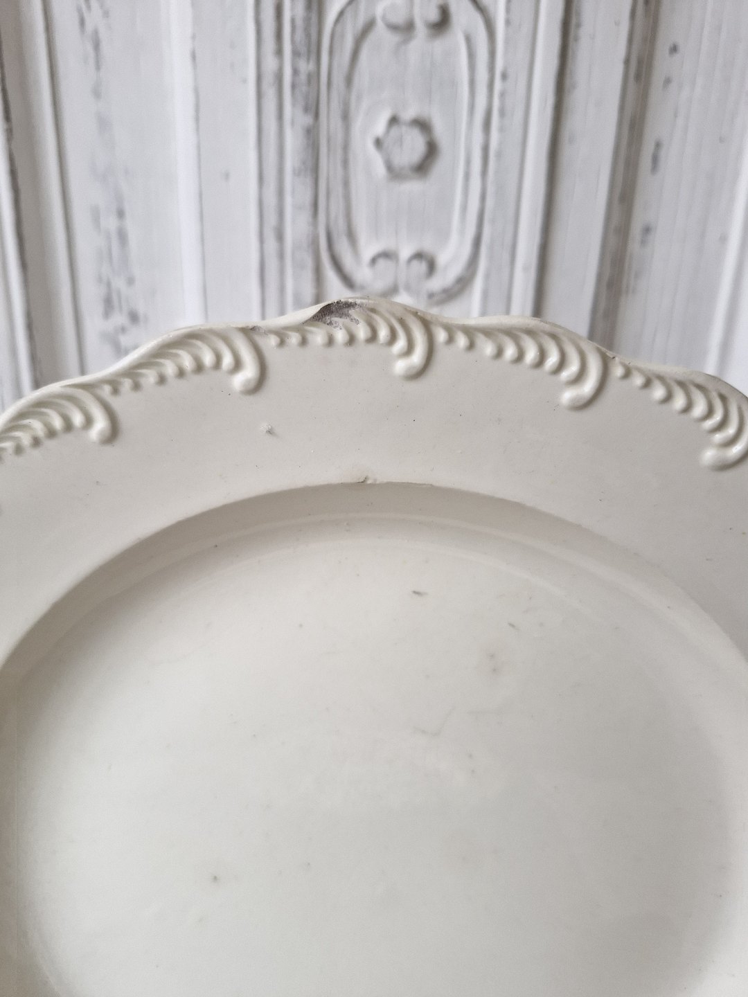 Engelsk Creamware tallerken dekoreret med fjerkant i relief 24,5 cm.
