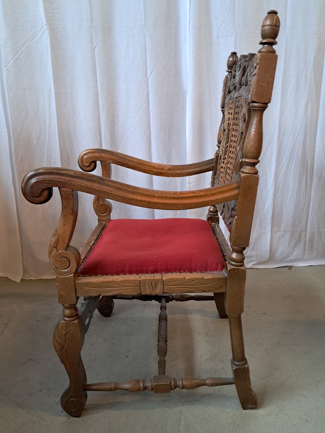 Armstol i massivt egetræ med rørflet, fra 1930erne.