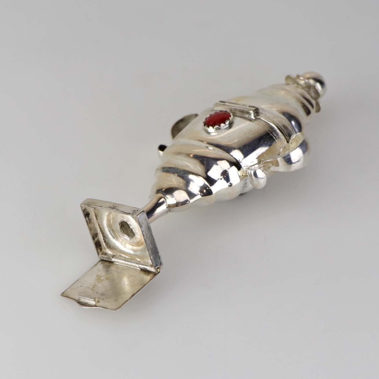 Fremstår med mindre afslag på den klare sten/glas samt brugsspor på sølv.