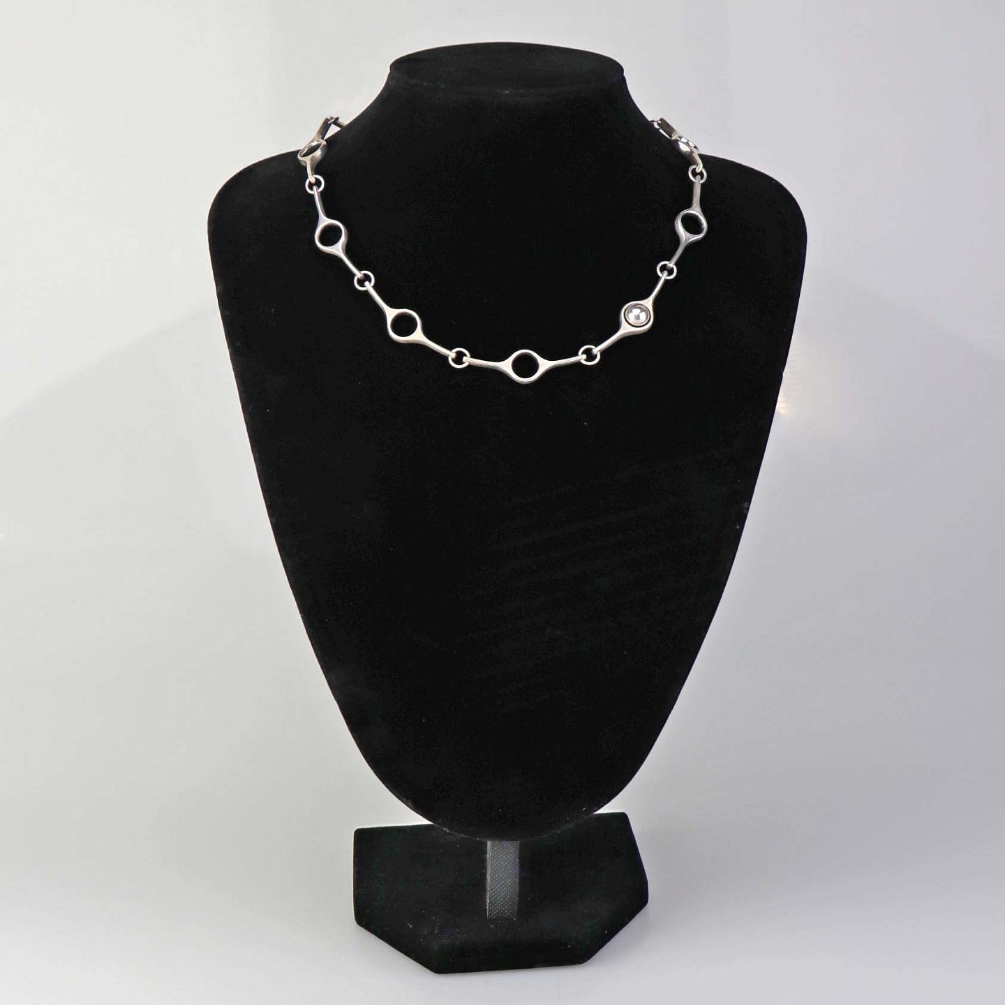 Halskæde i sterling sølv med sammensatte ellipseformede lænker og dekoration af en sølvkugle. Model Sphere.