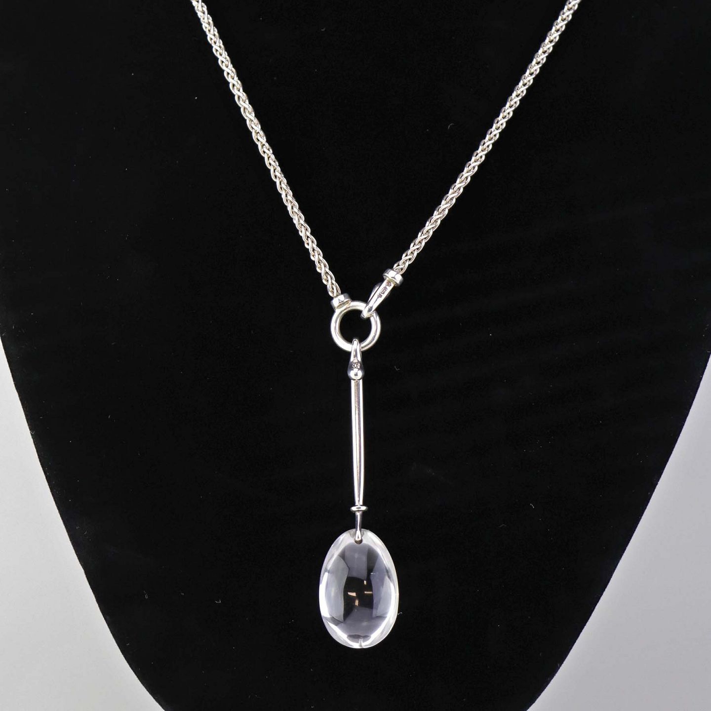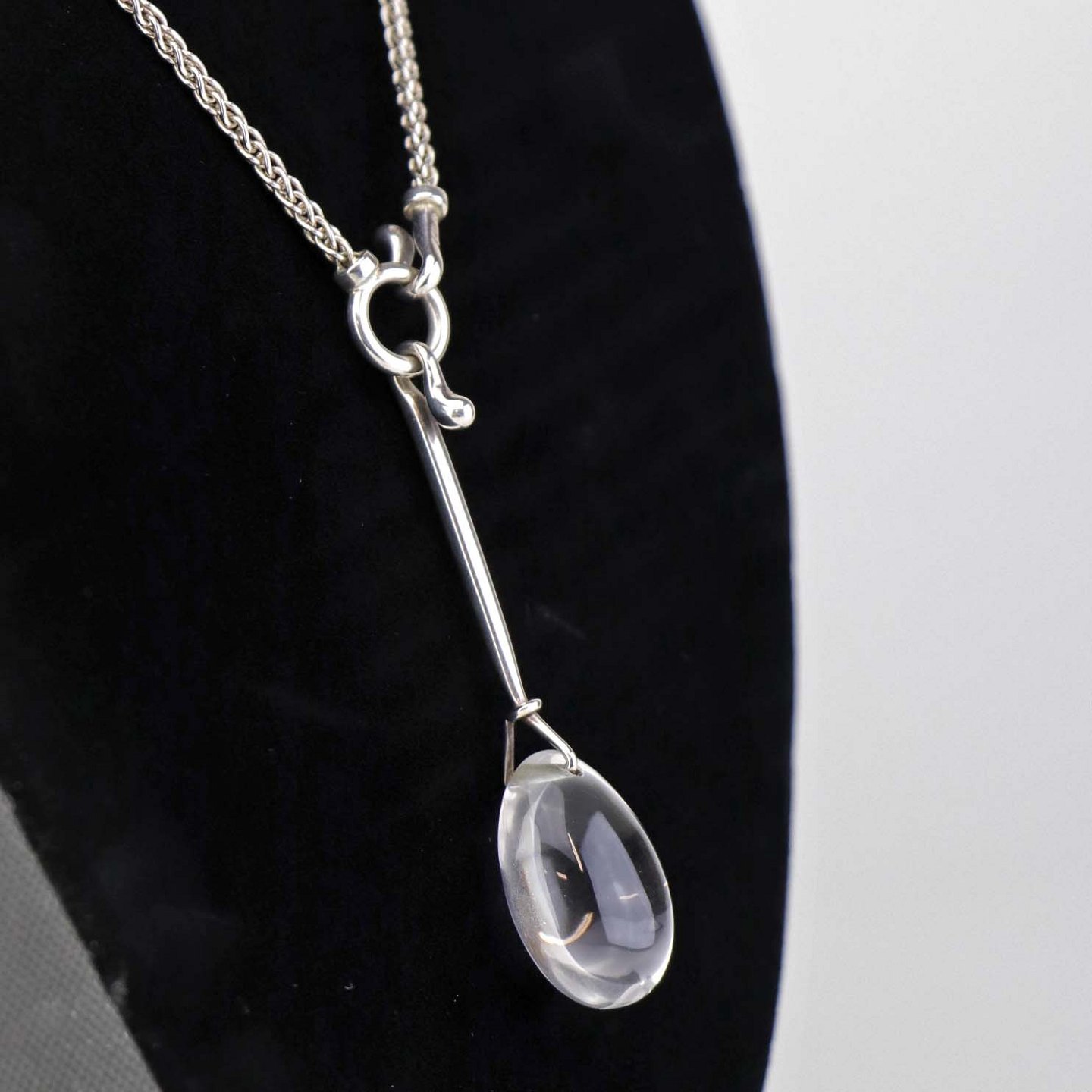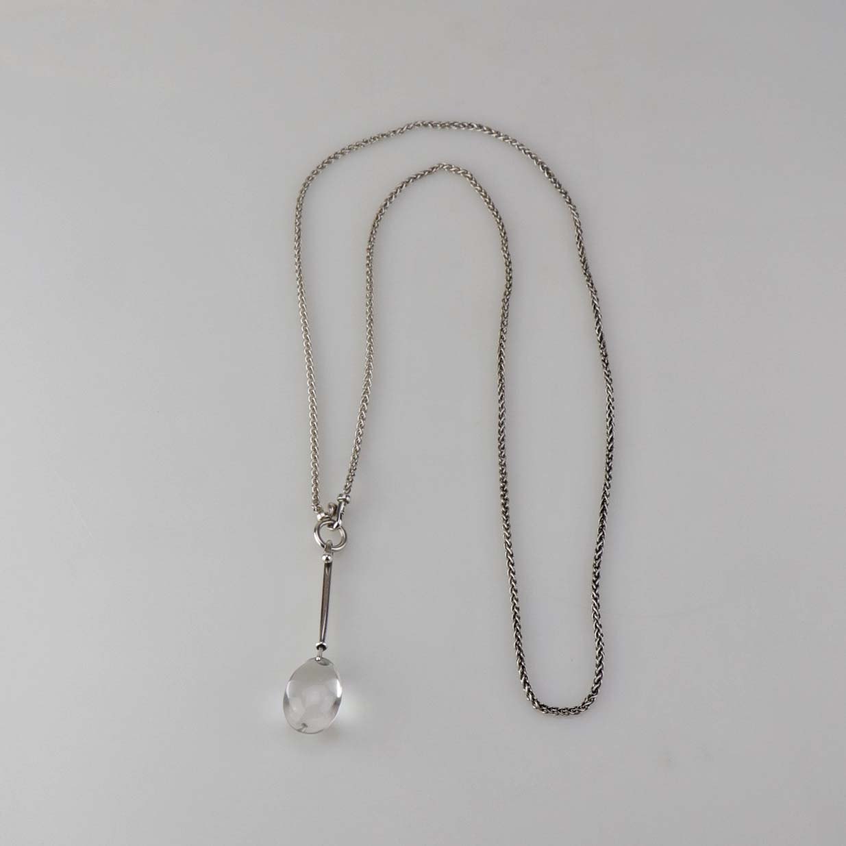 Halskæde i sterling sølv med vedhæng i klar kvarts. Model 128 Dew Drop.