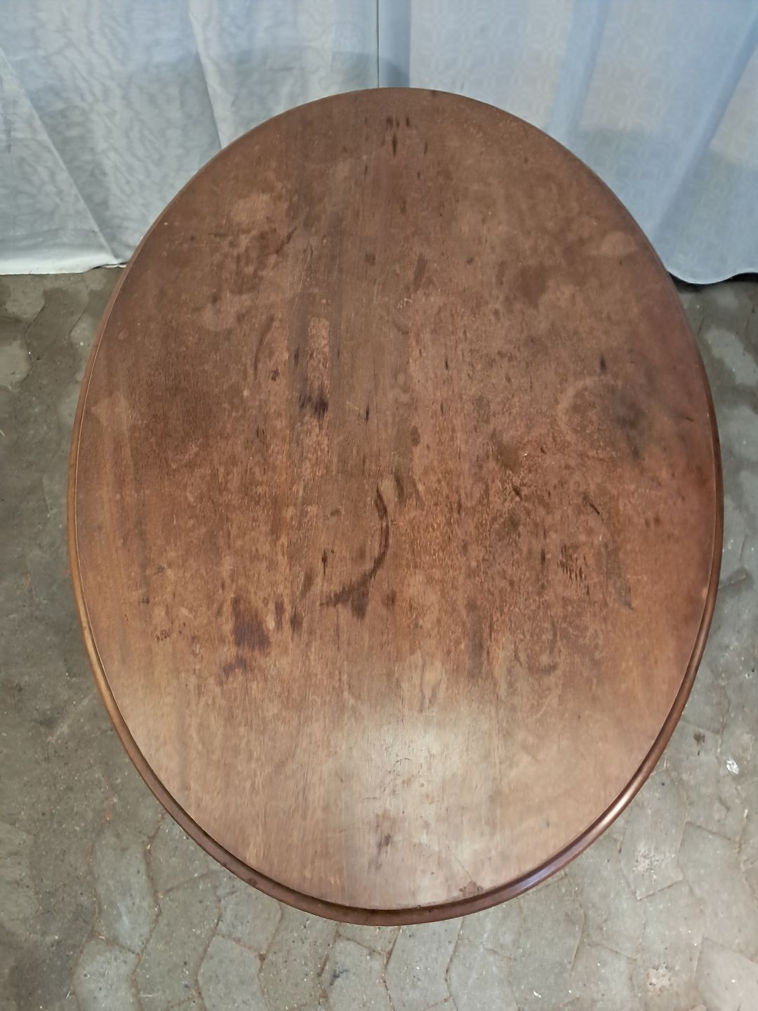 Ovalt salonbord i massivt mahogni, fra 1910erne.