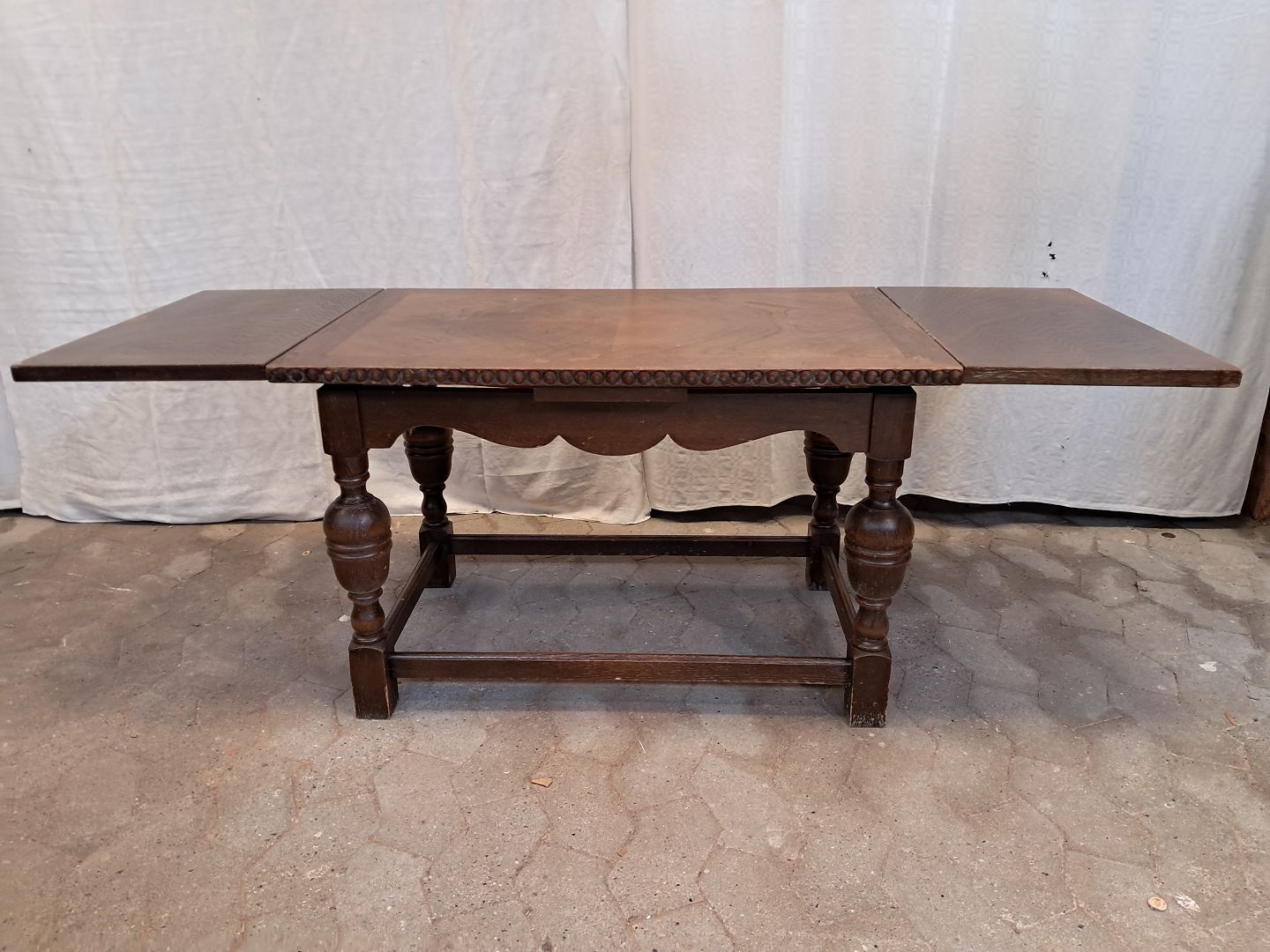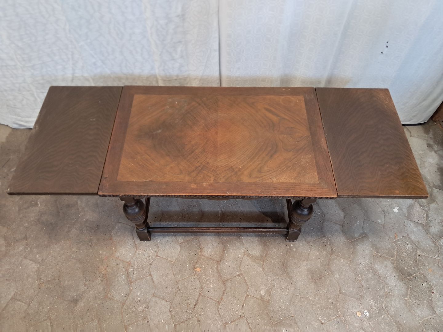 Sofabord i fineret egetræ med hollandsk udtræk, fra 1980erne.