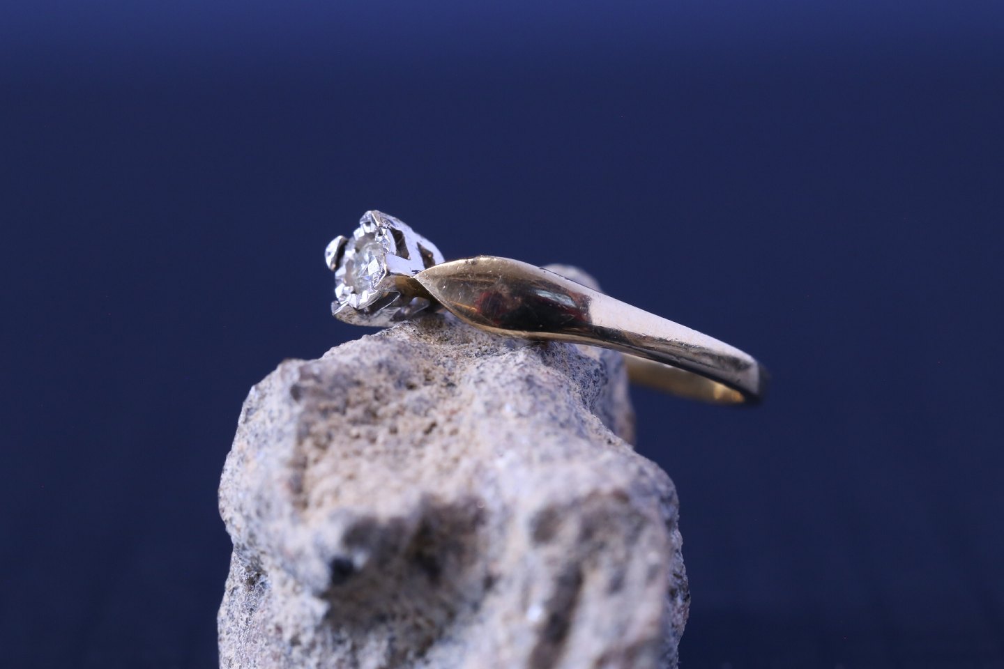 Flot og eksklusiv guldring, fremstillet af rød- og hvidguld. Blandingen af guldet giver ringen en spændende dynamik, der understreges af den flotte diamant på toppen af ringen.