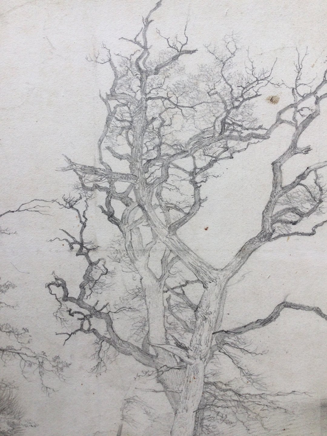 Tegning af Heinrich Buntzen - Nøgent træ i lysning.