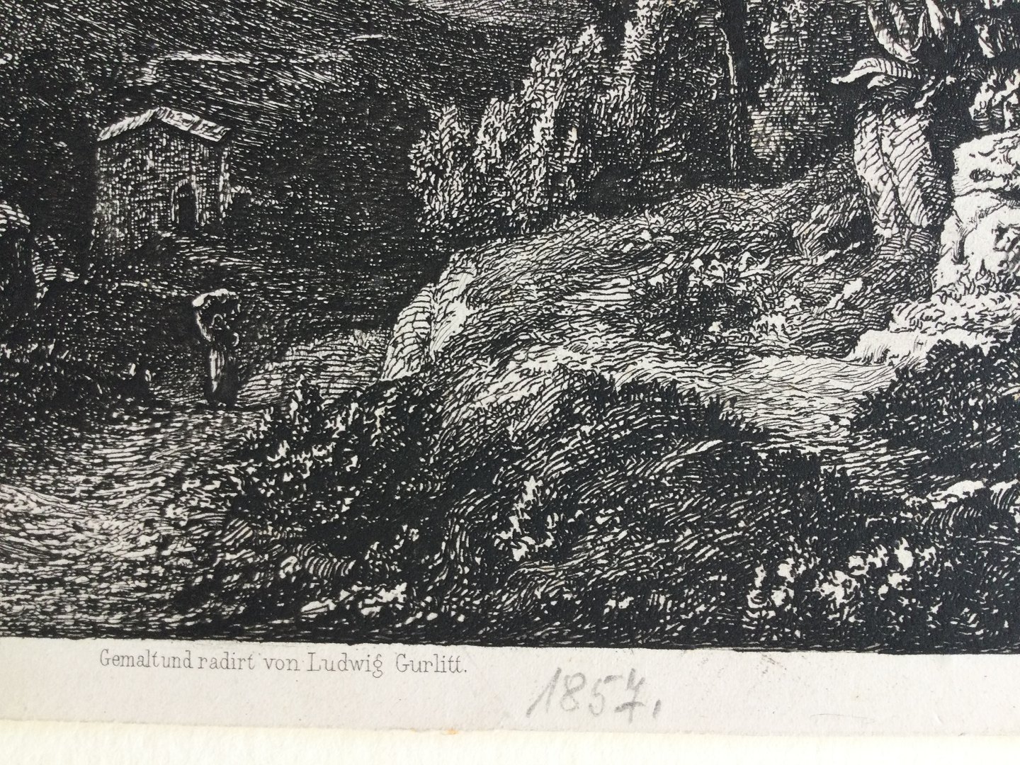 Radering af Louis Gurlitt - Fra Sabiner-bjergene, Italien 1857.