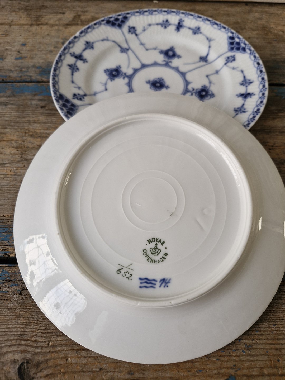 Royal Copenhagen Musselmalet halvblonde helflad tallerken no. 652 - 19 cm.