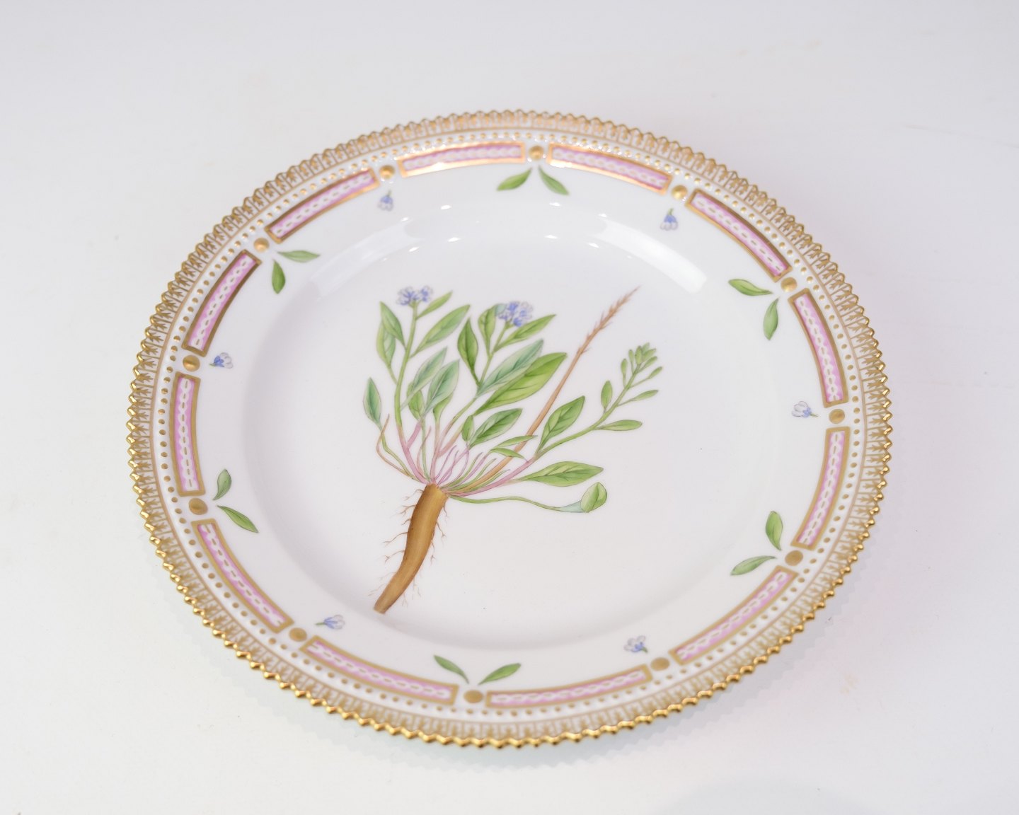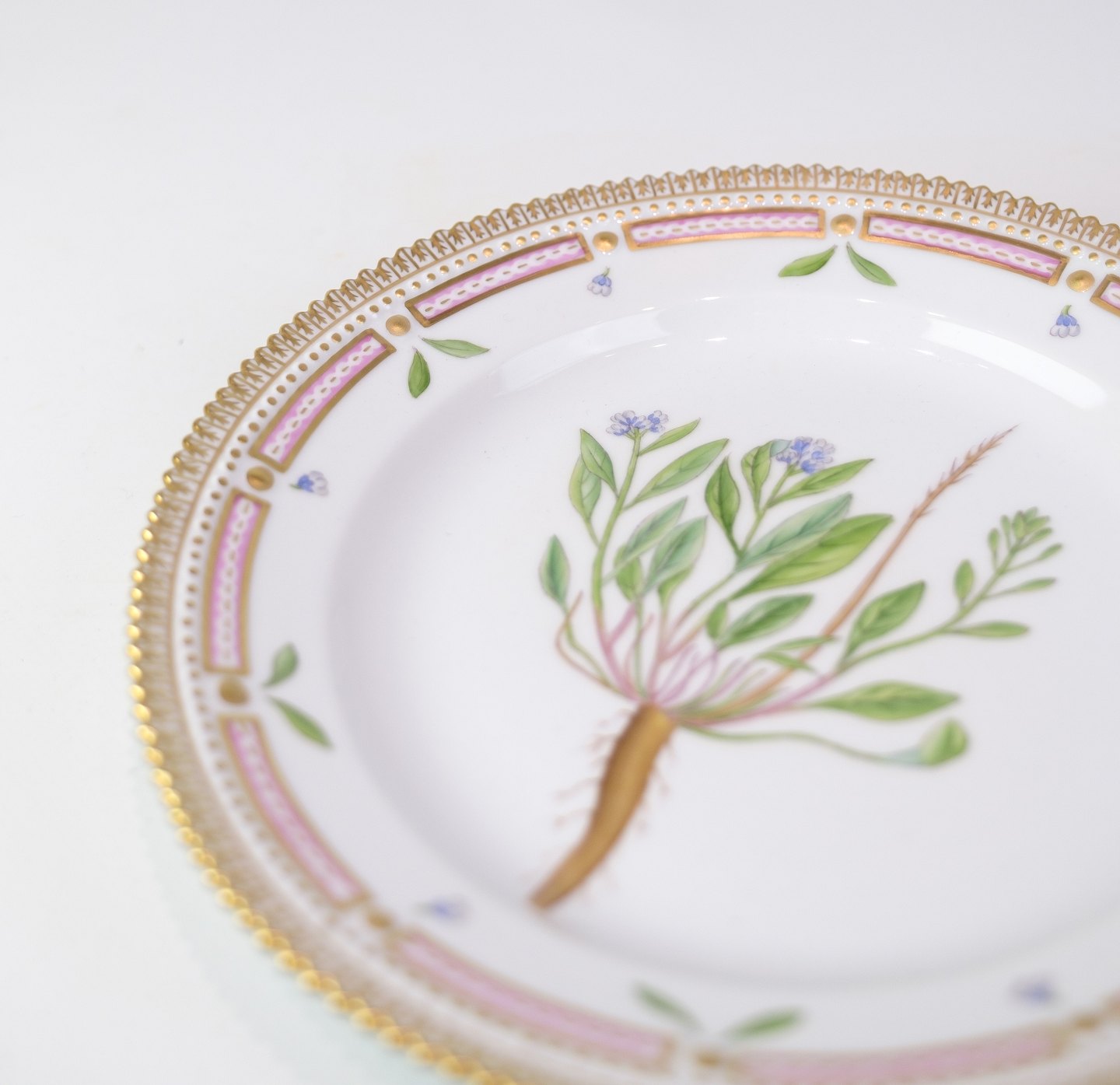 Lunch plate from Flora Danica, decoration no. 20/3550. Hand-painted and with gold rim. Royal Copenhagen, circa 1960s.
