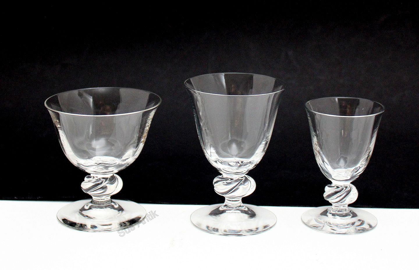 Holmegaard, Ulfborg krystalglas med optisk stribet kumme og stærkt vredet stilk. Designet af Jacob E Bang i 1937. Udgår af produktion omkring 1970.