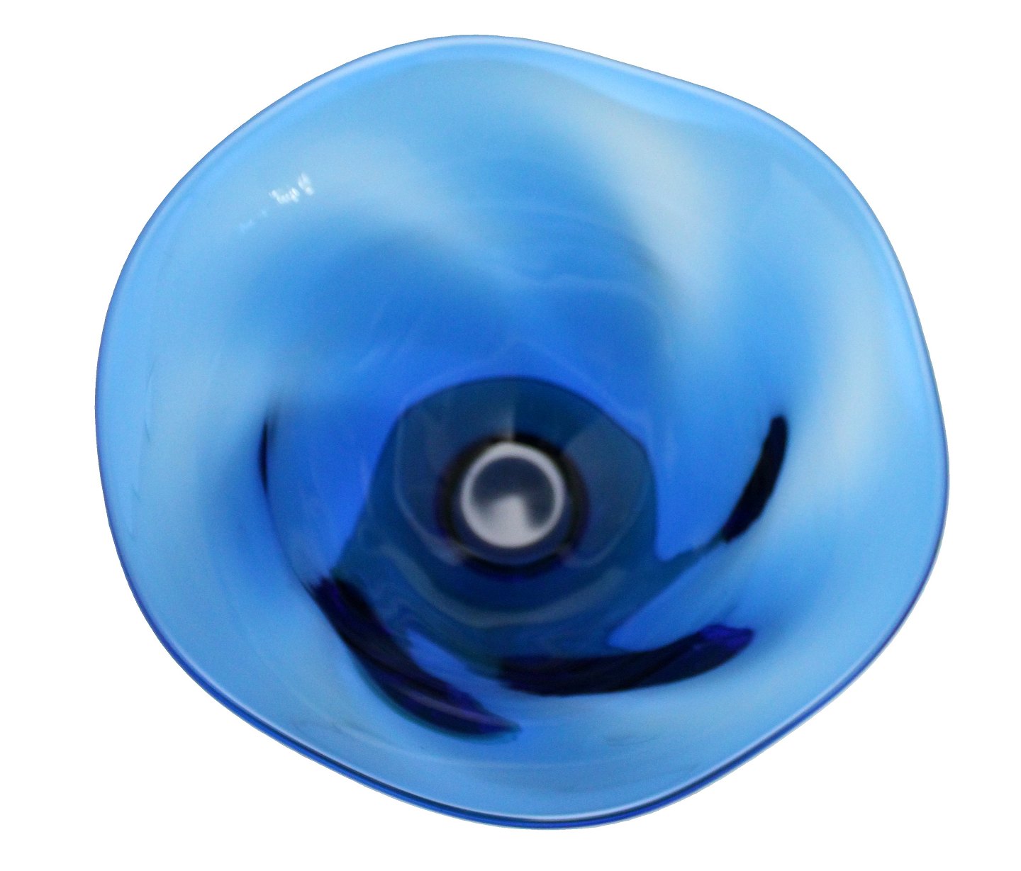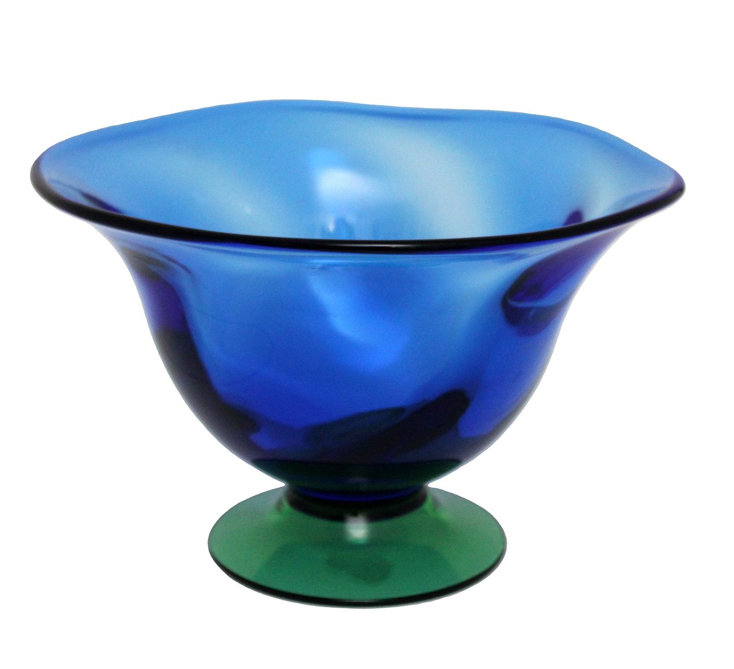 Orrerfors, Sweden, Louise. Stor svejfet/twistet glasskål i transparant blåt glas på grøn fod. Designet af Erika Lagerlielke. Højde 16 cm. Diameter 25 cm. Flot stand uden ridser. Pris: 475 kr.