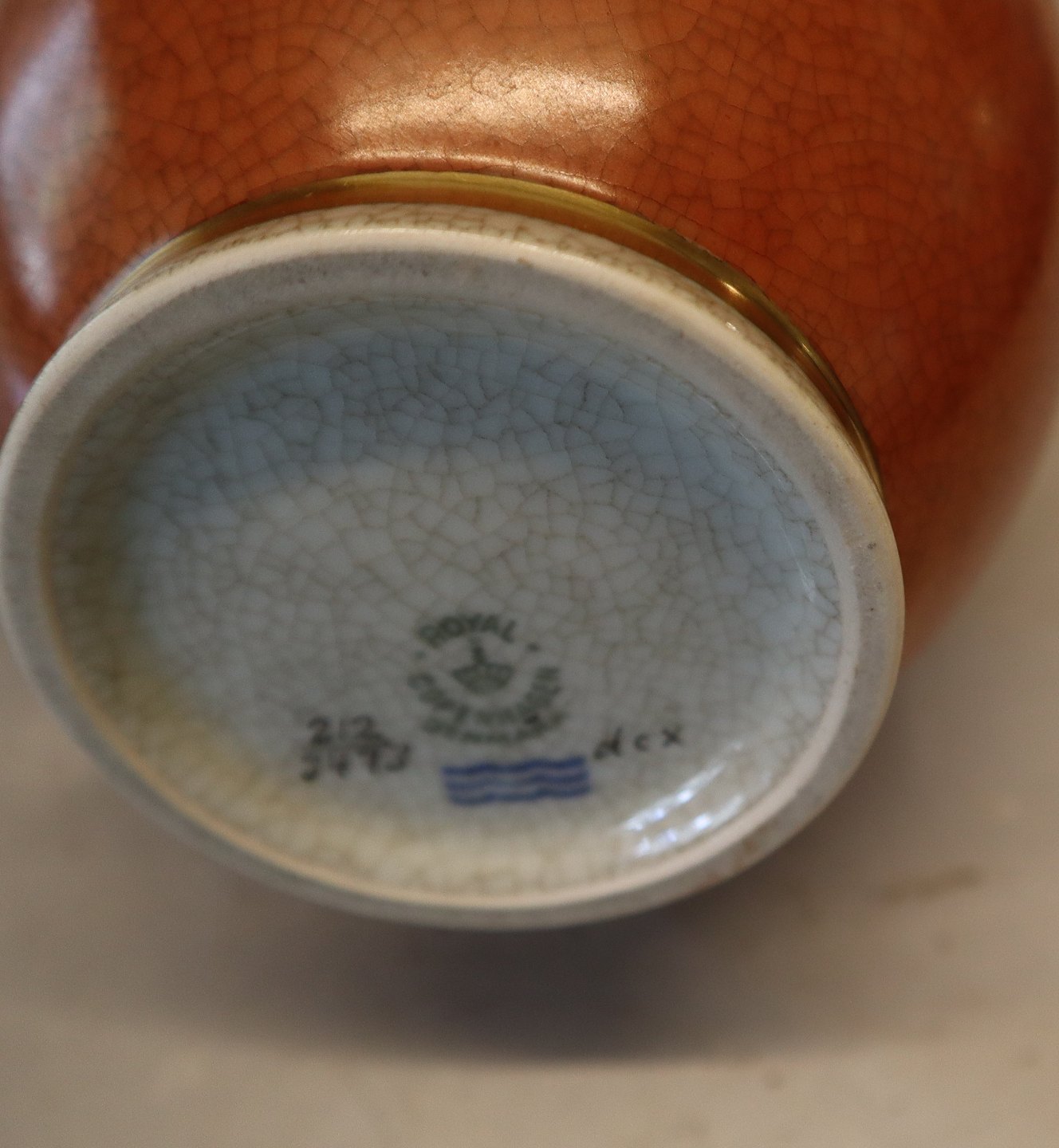 212-3473 Kgl. Orange vase med gråt og guld 25 cm Kgl. Craquelé fra Royal Copenhagen I hel og fin stand