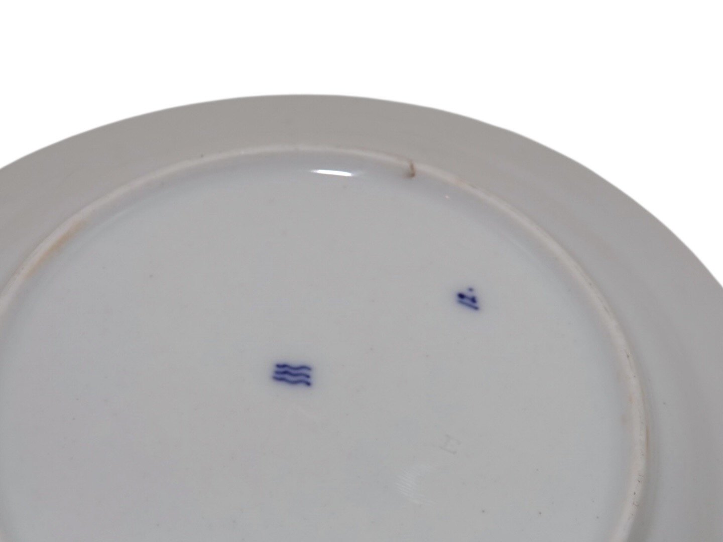 There is a born with firing crack at the backside on the standpoint edge, it can be seen in the last picture. Otherwise perfect condition with no chips/cracks/repairs.