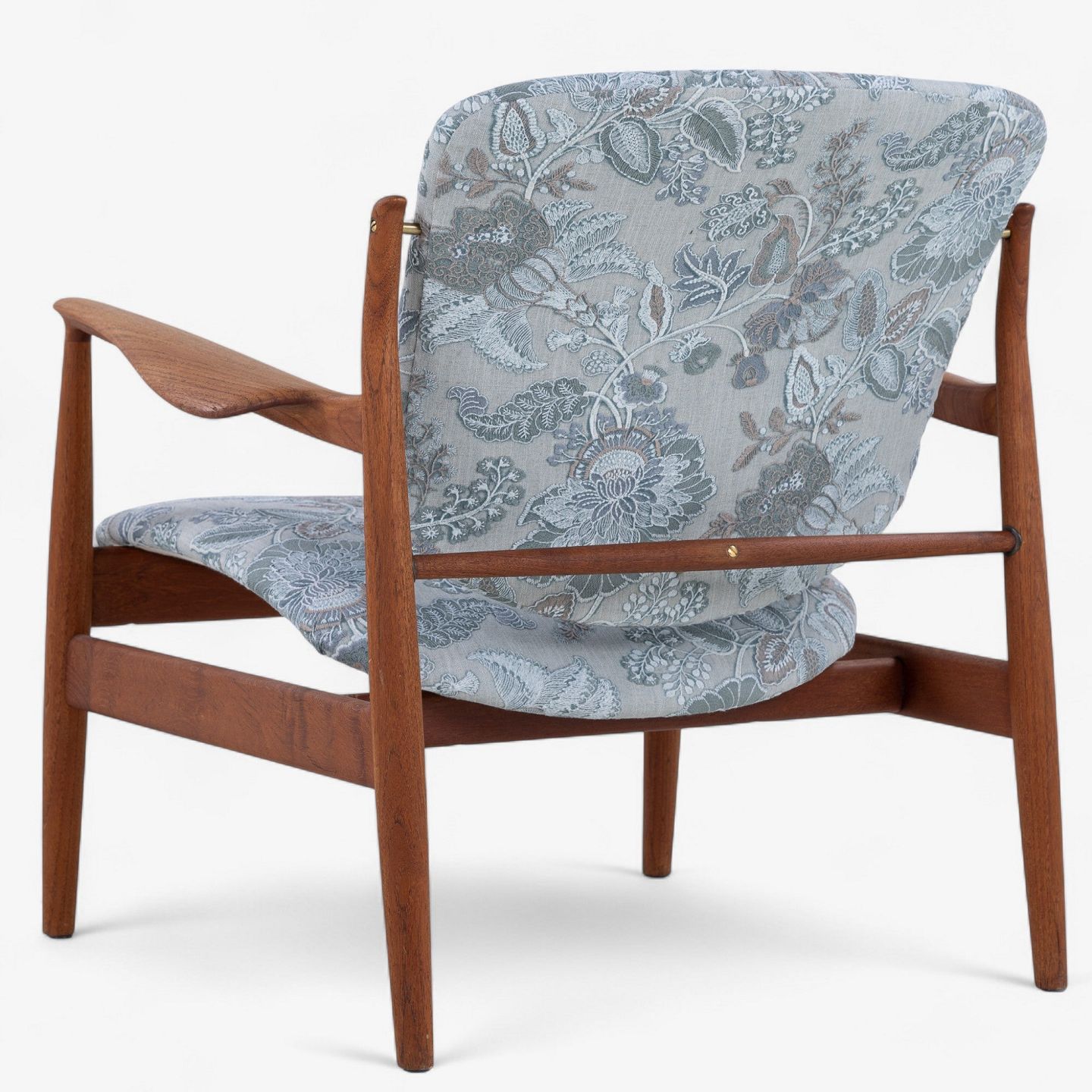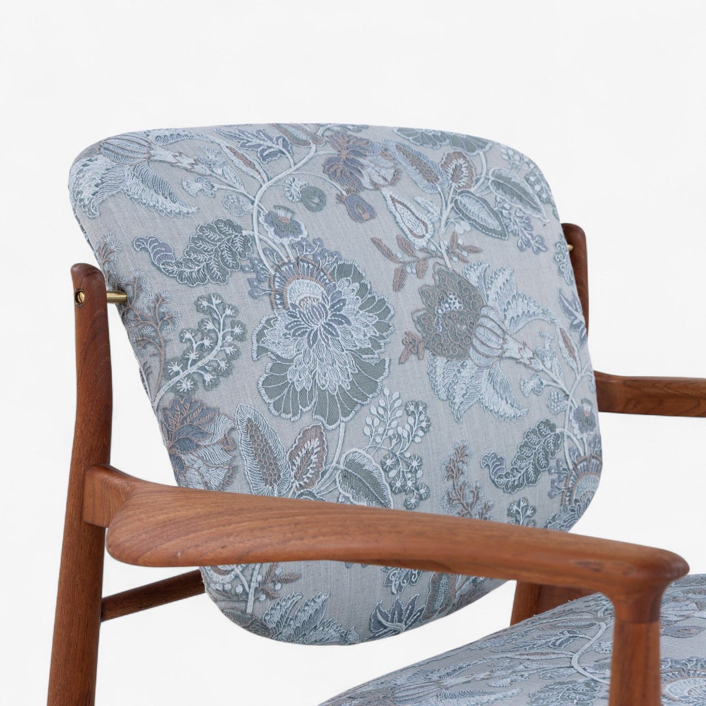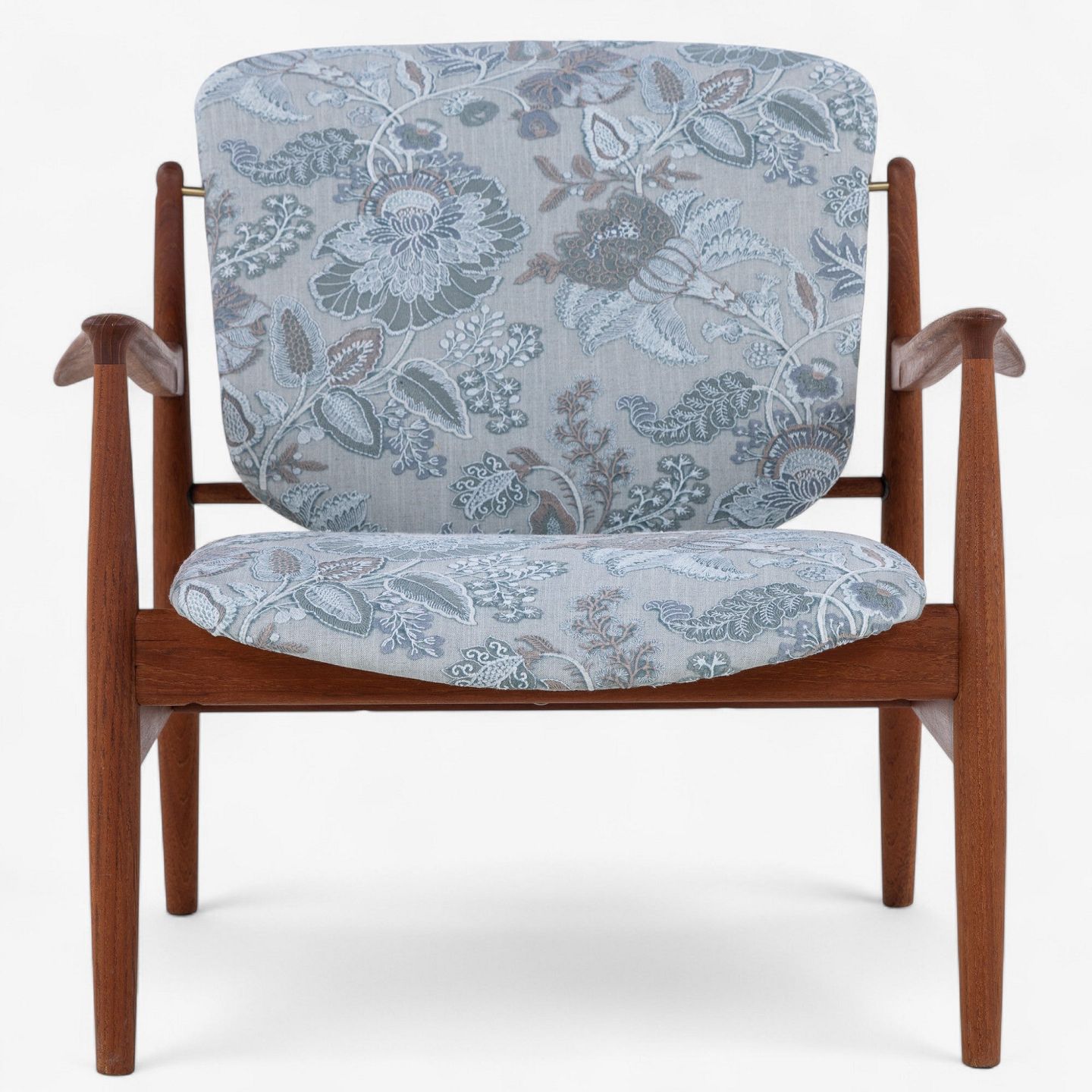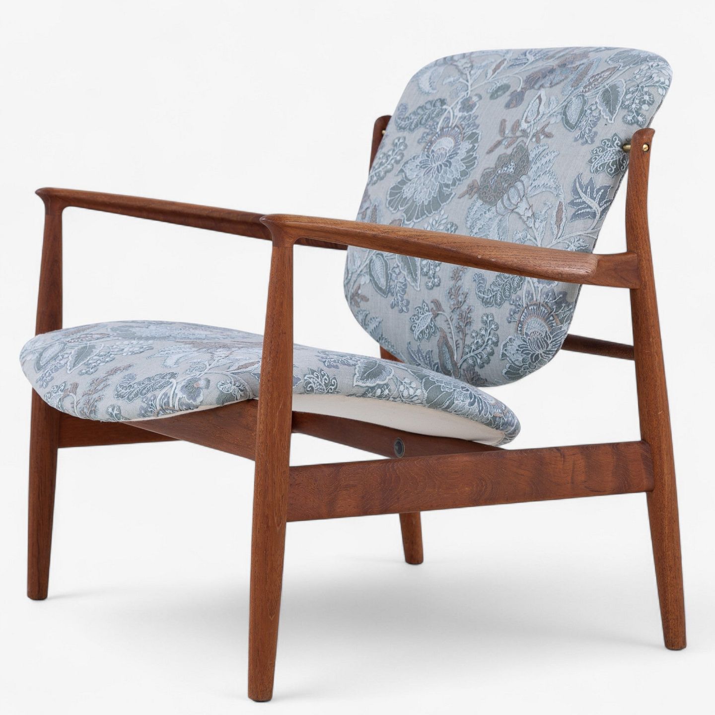 FD 136 - Lænestol i teak med nybetrukket ryg og sæde i 'Cassia Aqua'-tekstil.