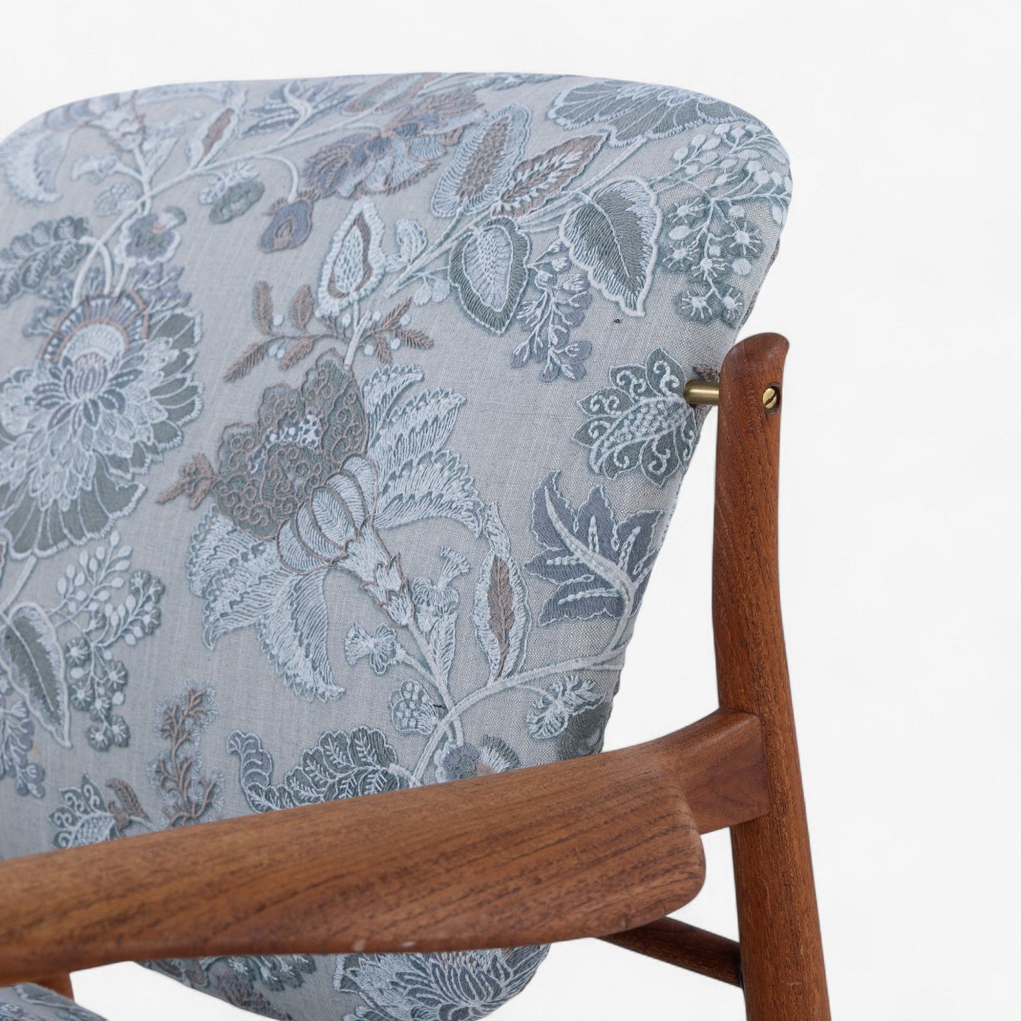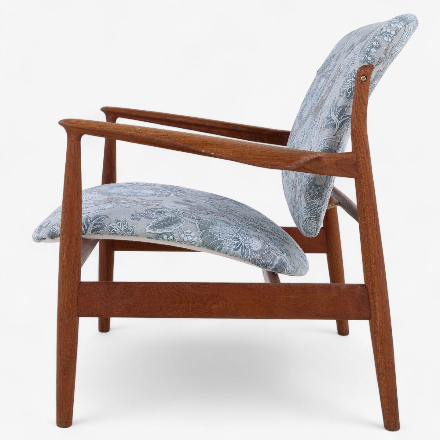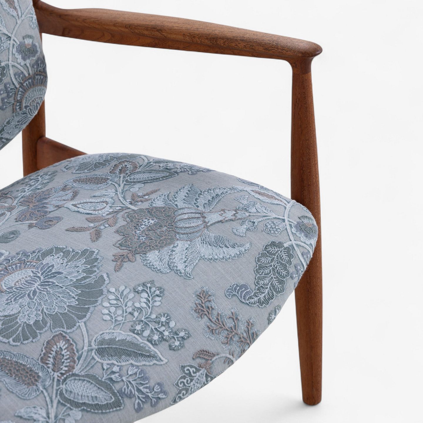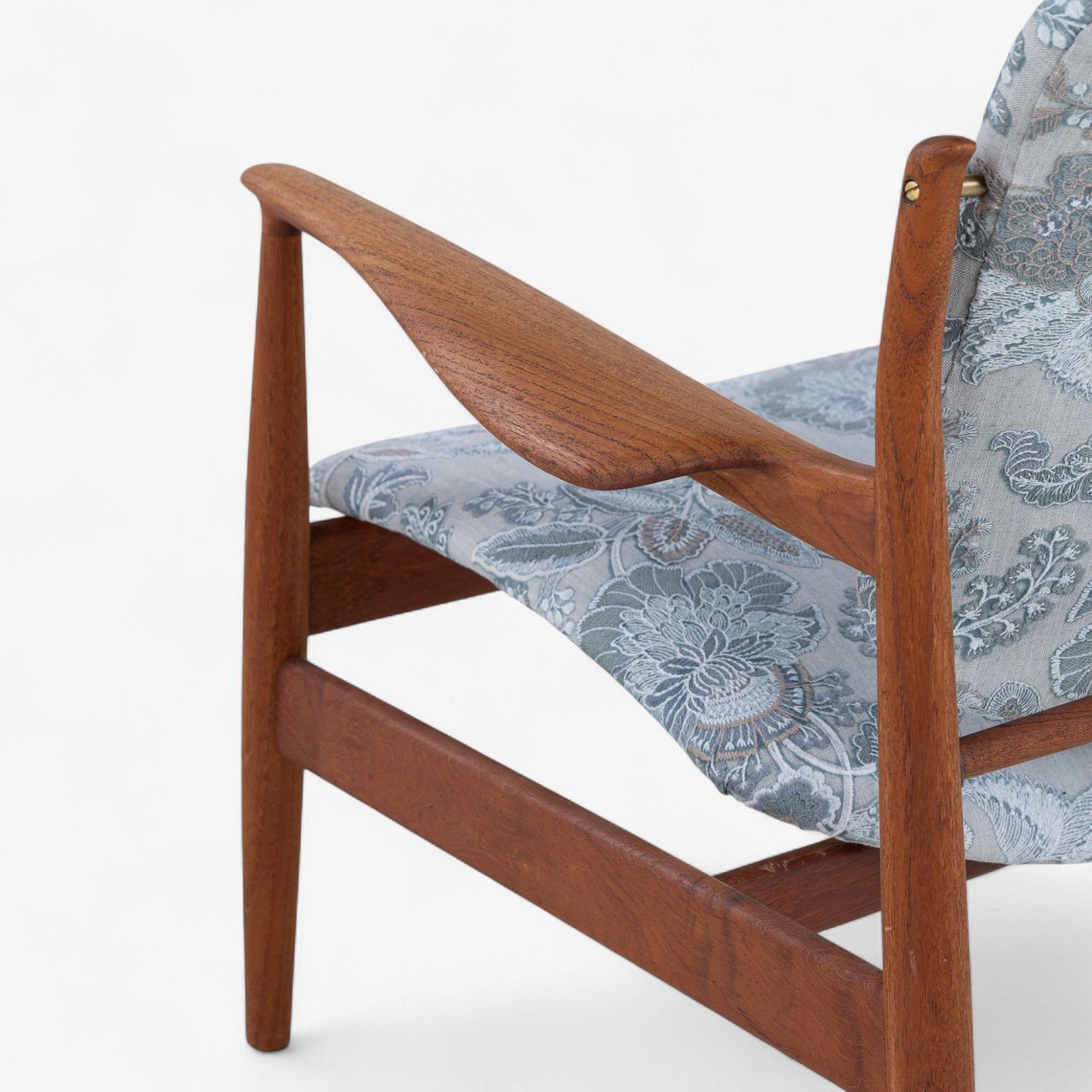 FD 136 - Lænestol i teak med nybetrukket ryg og sæde i 'Cassia Aqua'-tekstil.