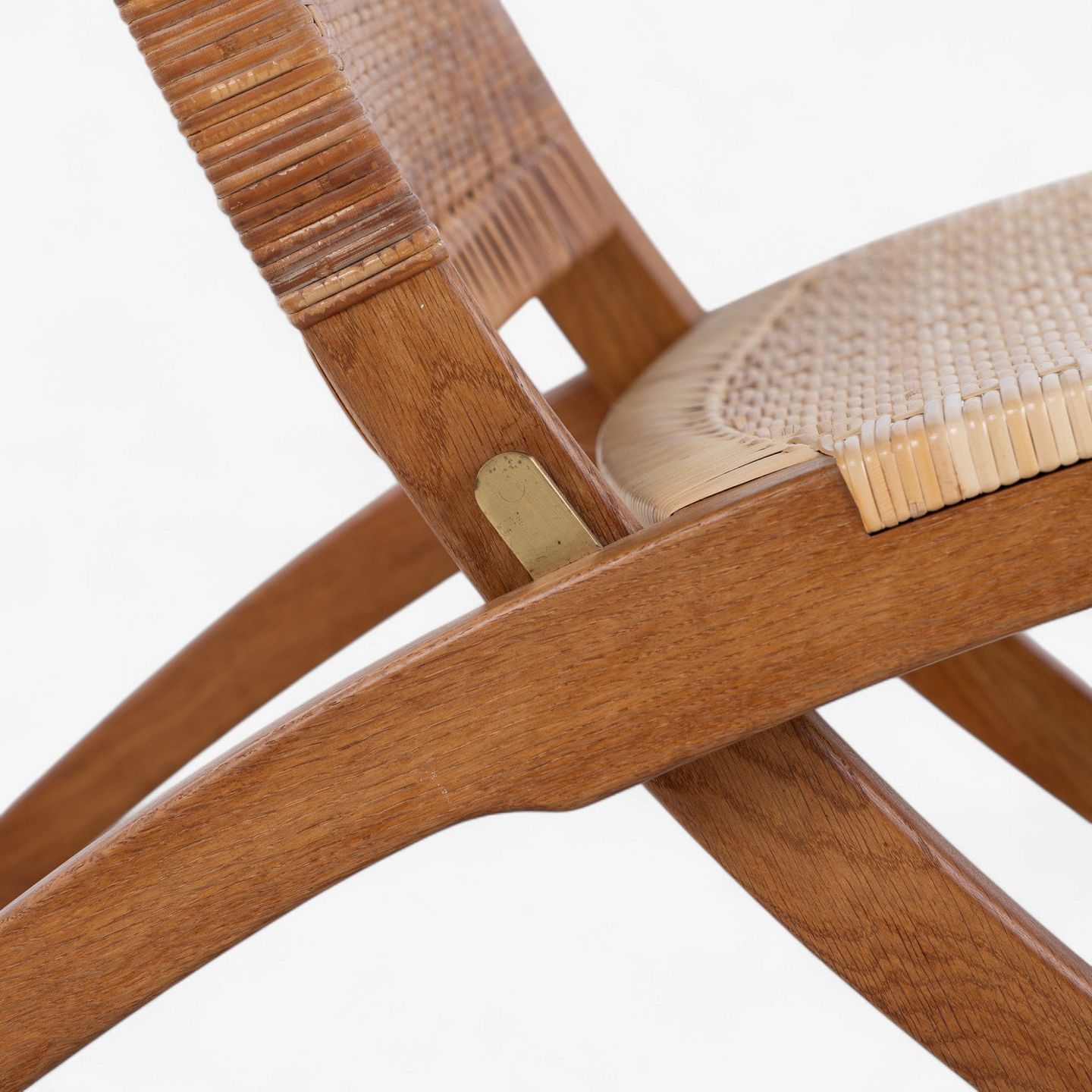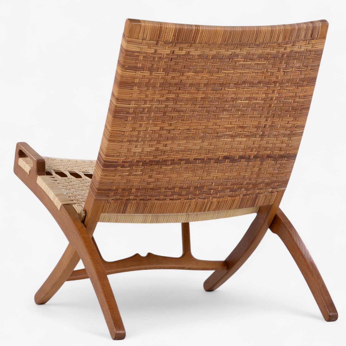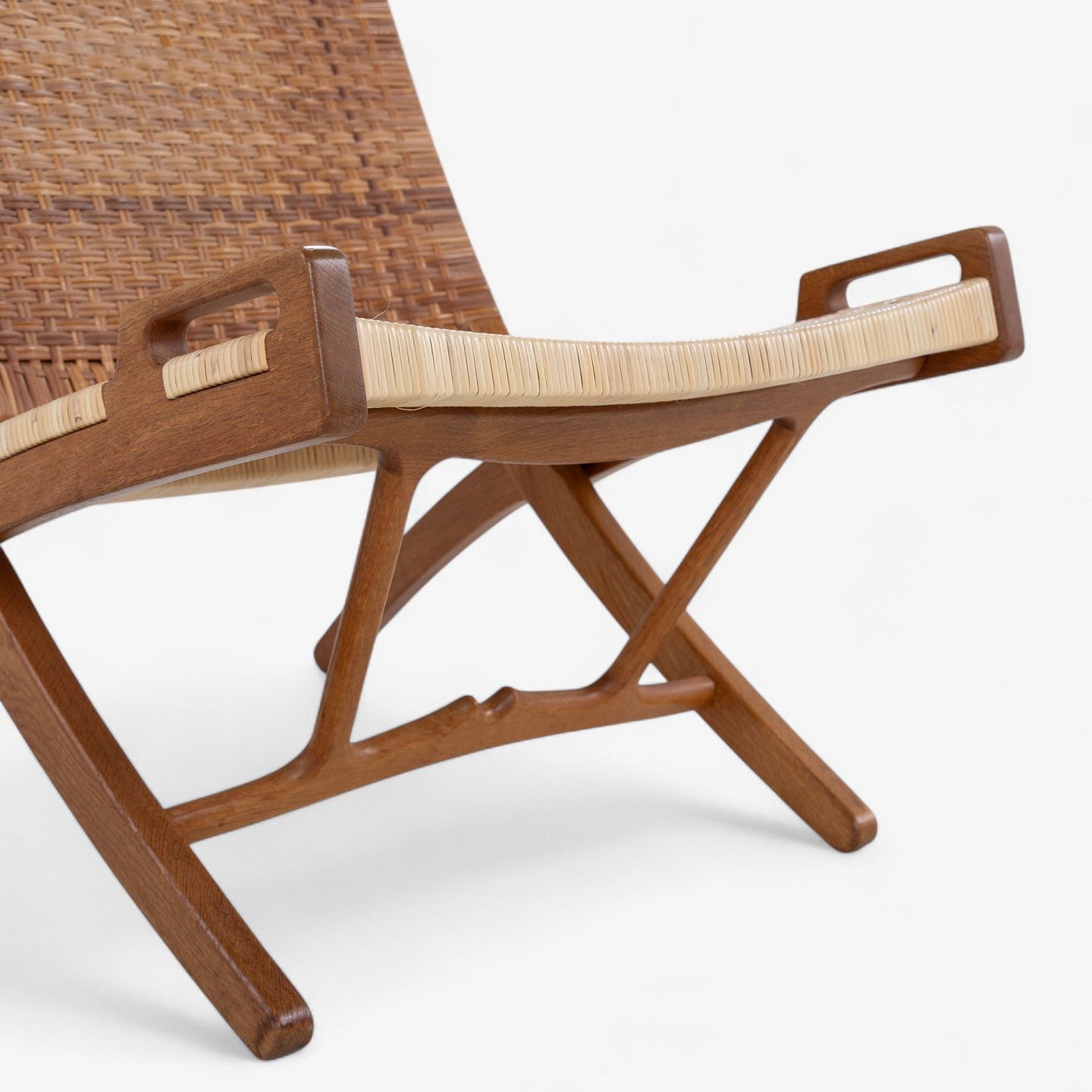JH 512 - 'Fireplace' folding chair in patinated oak with seat and back in partly original wicker. Original hook for wall hanging included. Designed in 1949.
