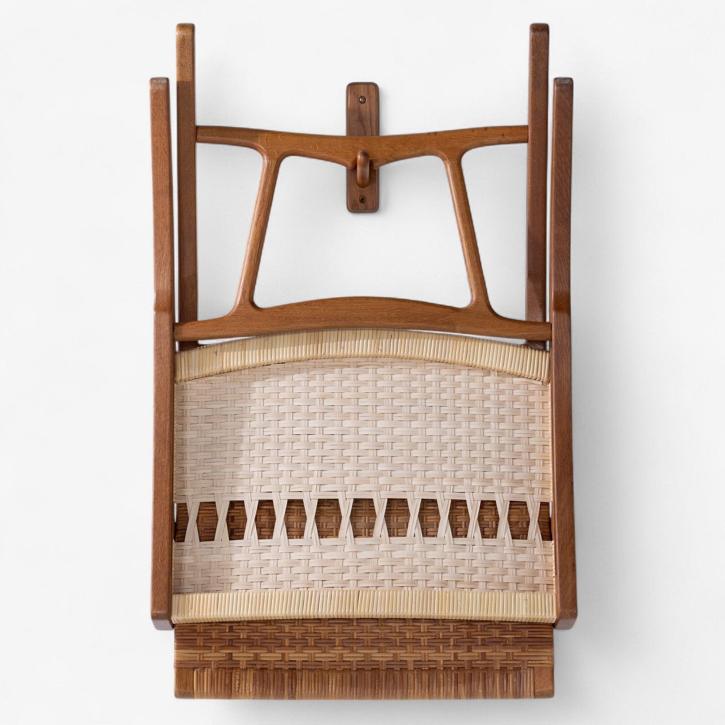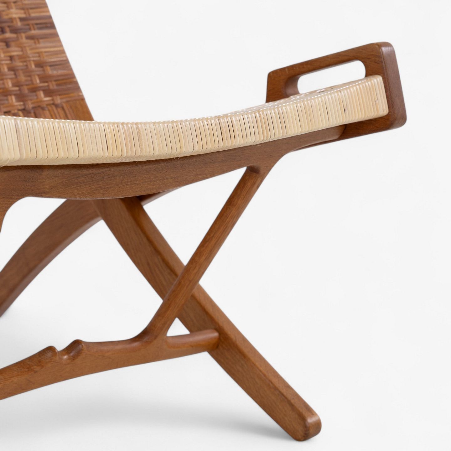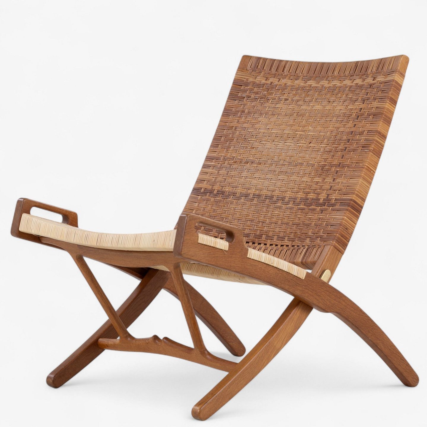 JH 512 - 'Fireplace' folding chair in patinated oak with seat and back in partly original wicker. Original hook for wall hanging included. Designed in 1949.