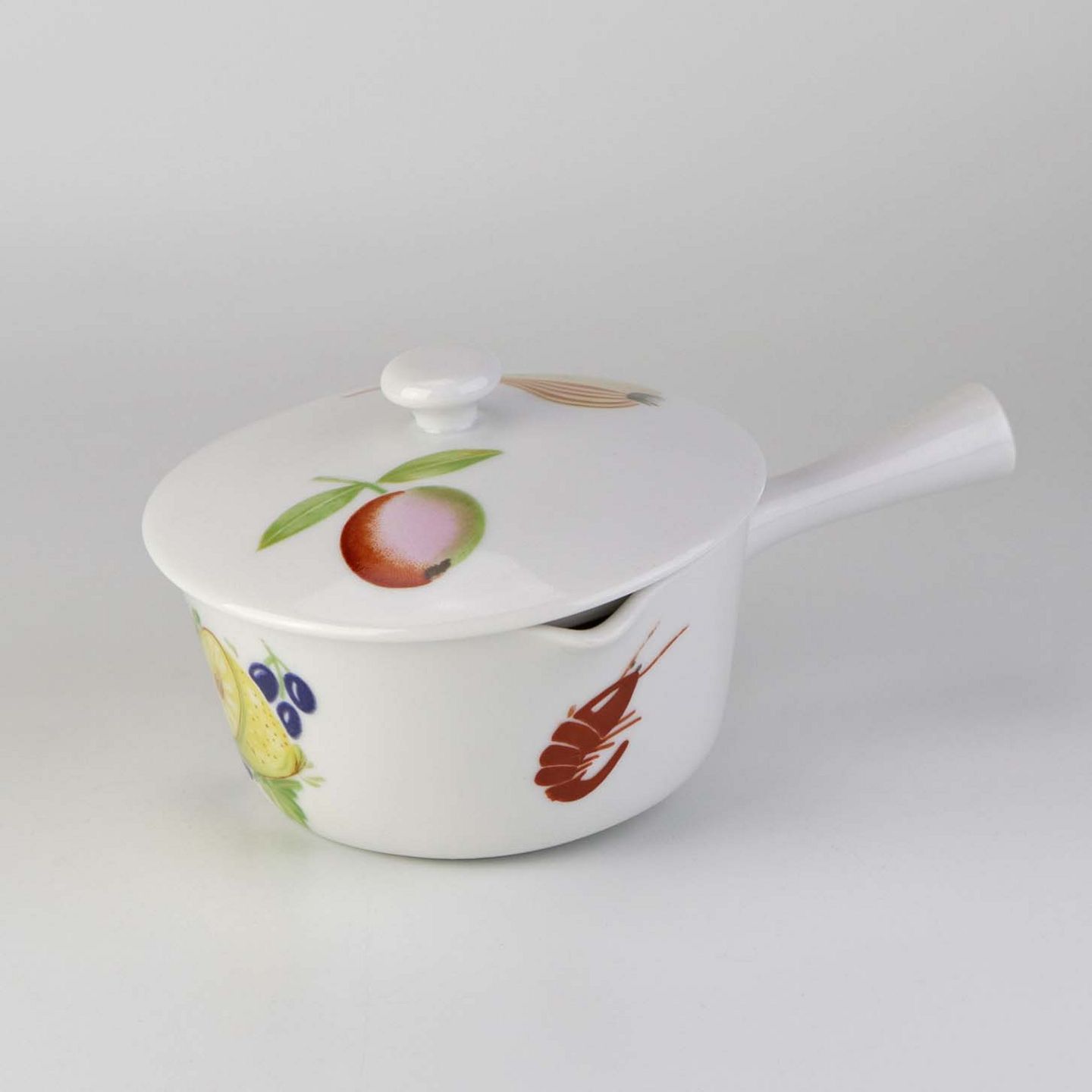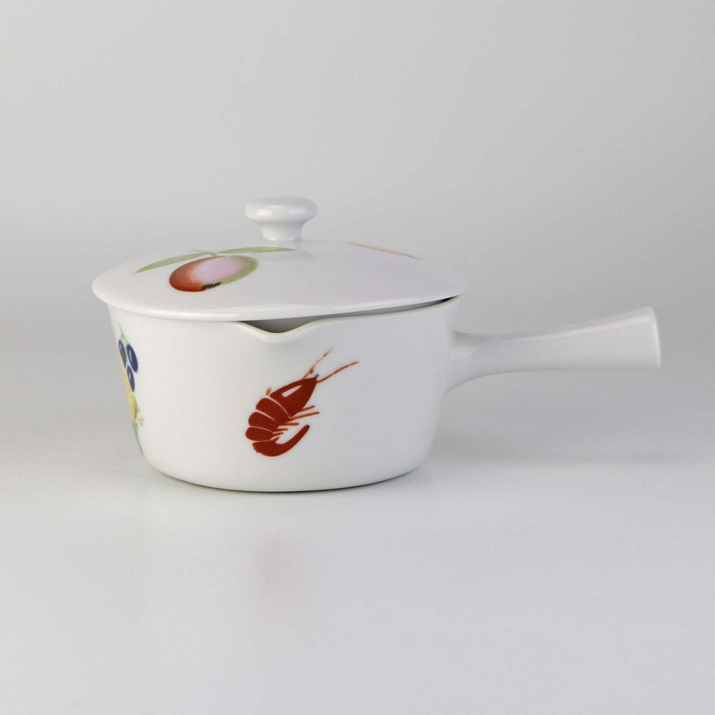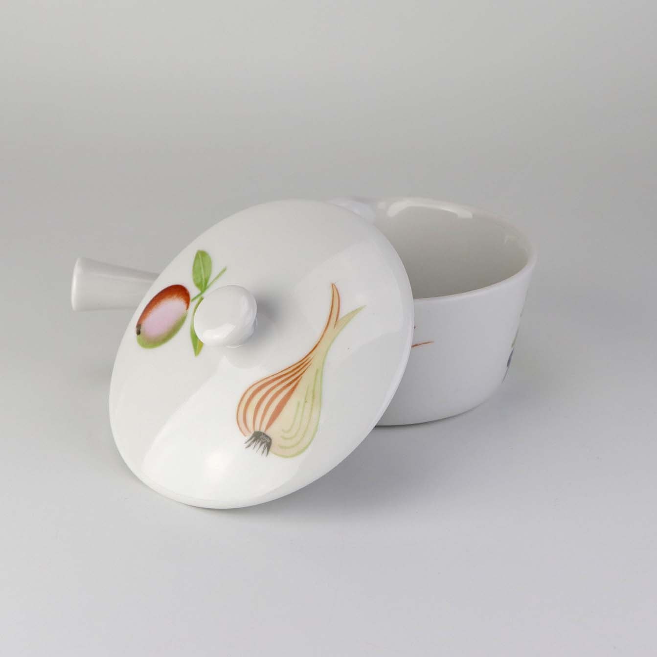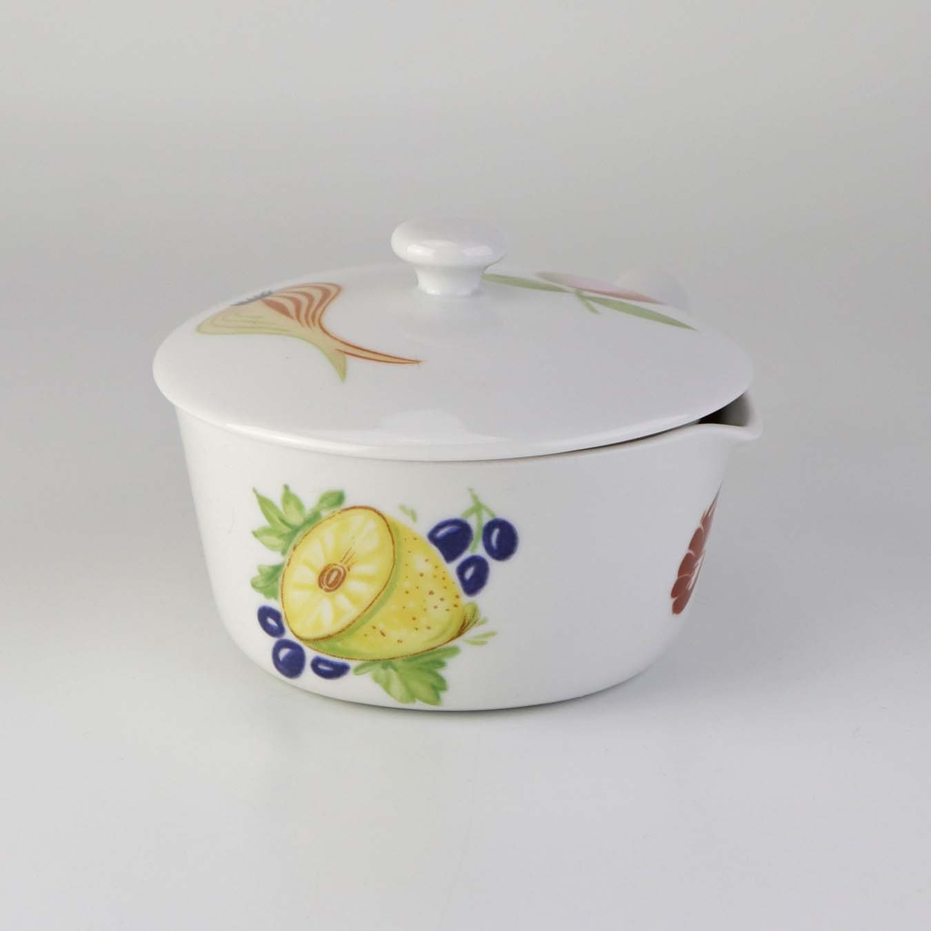 Smørnæb med hank og låg i porcelæn fra stellet Danild 50 Frugt og grønt - også kendt som Picnic stellet.