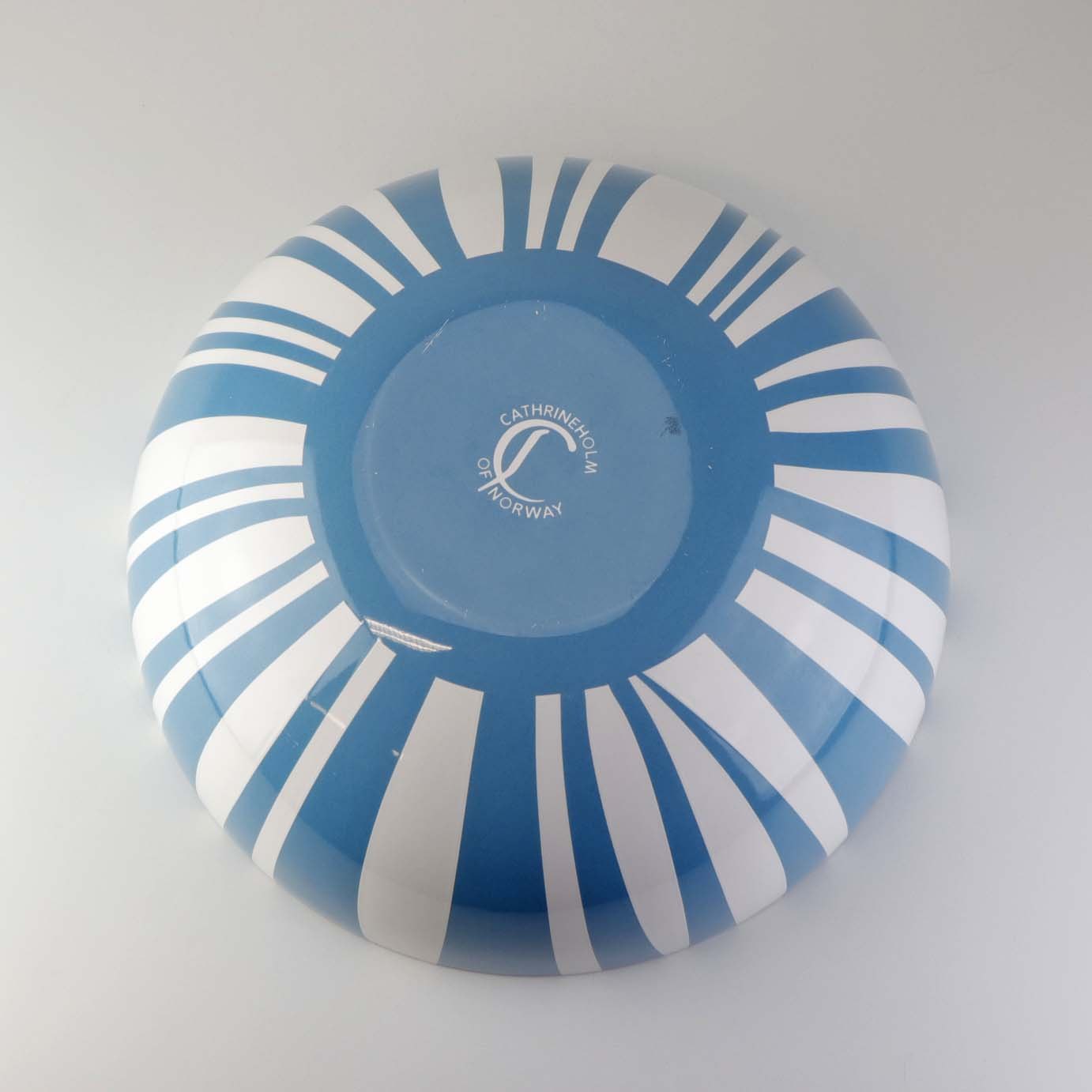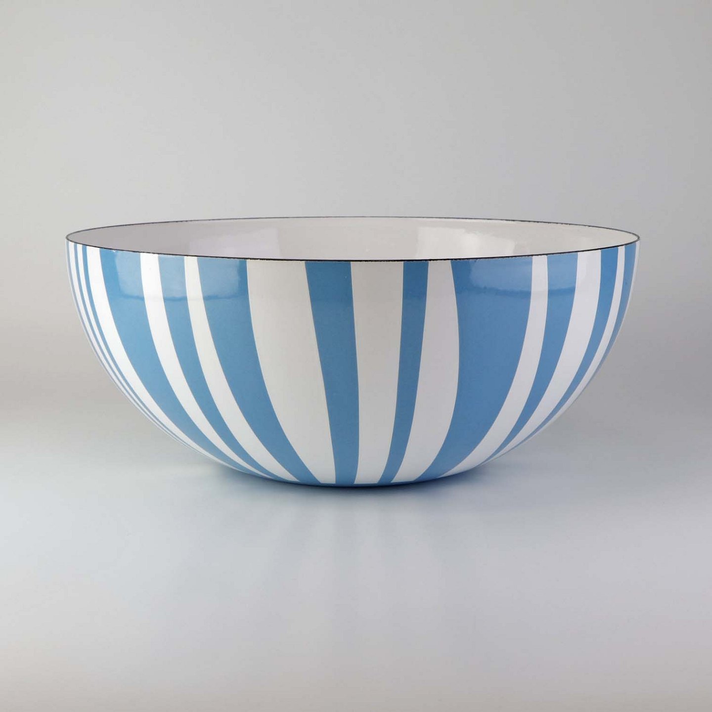 Stor skål i blå og hvid stibet emalje fra serien Stripes.