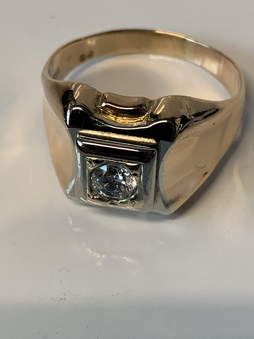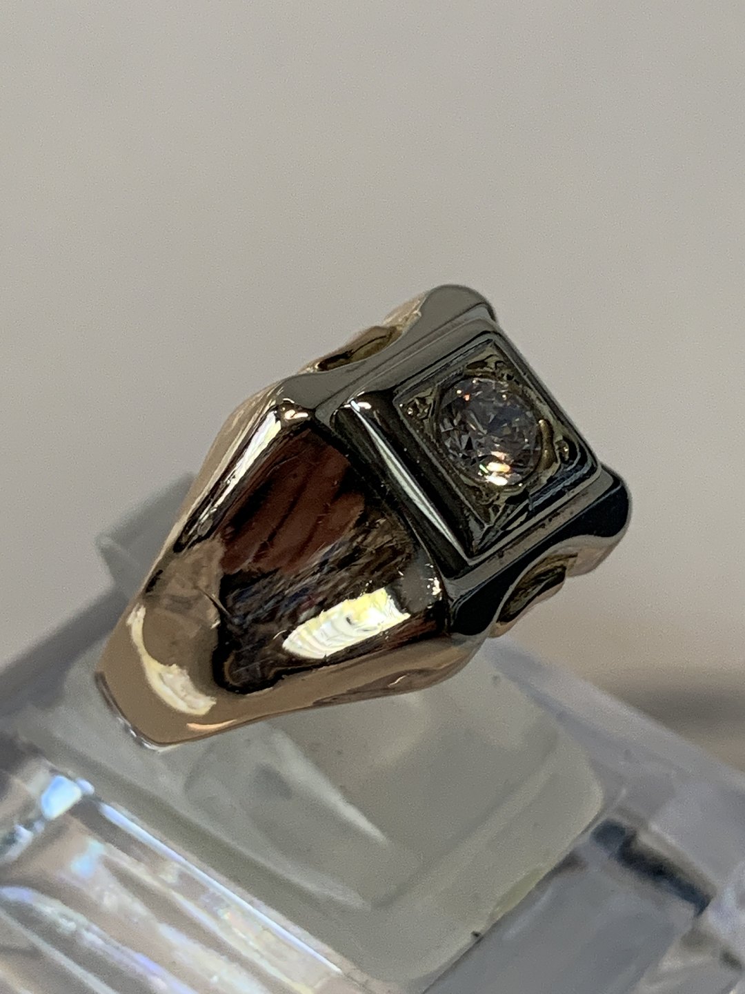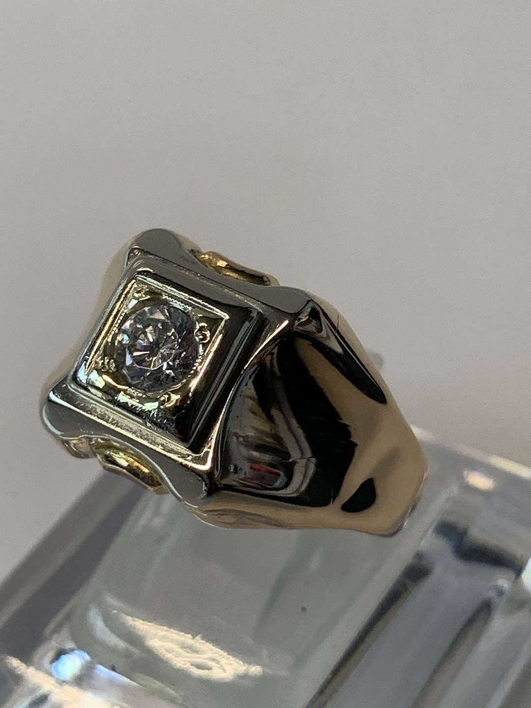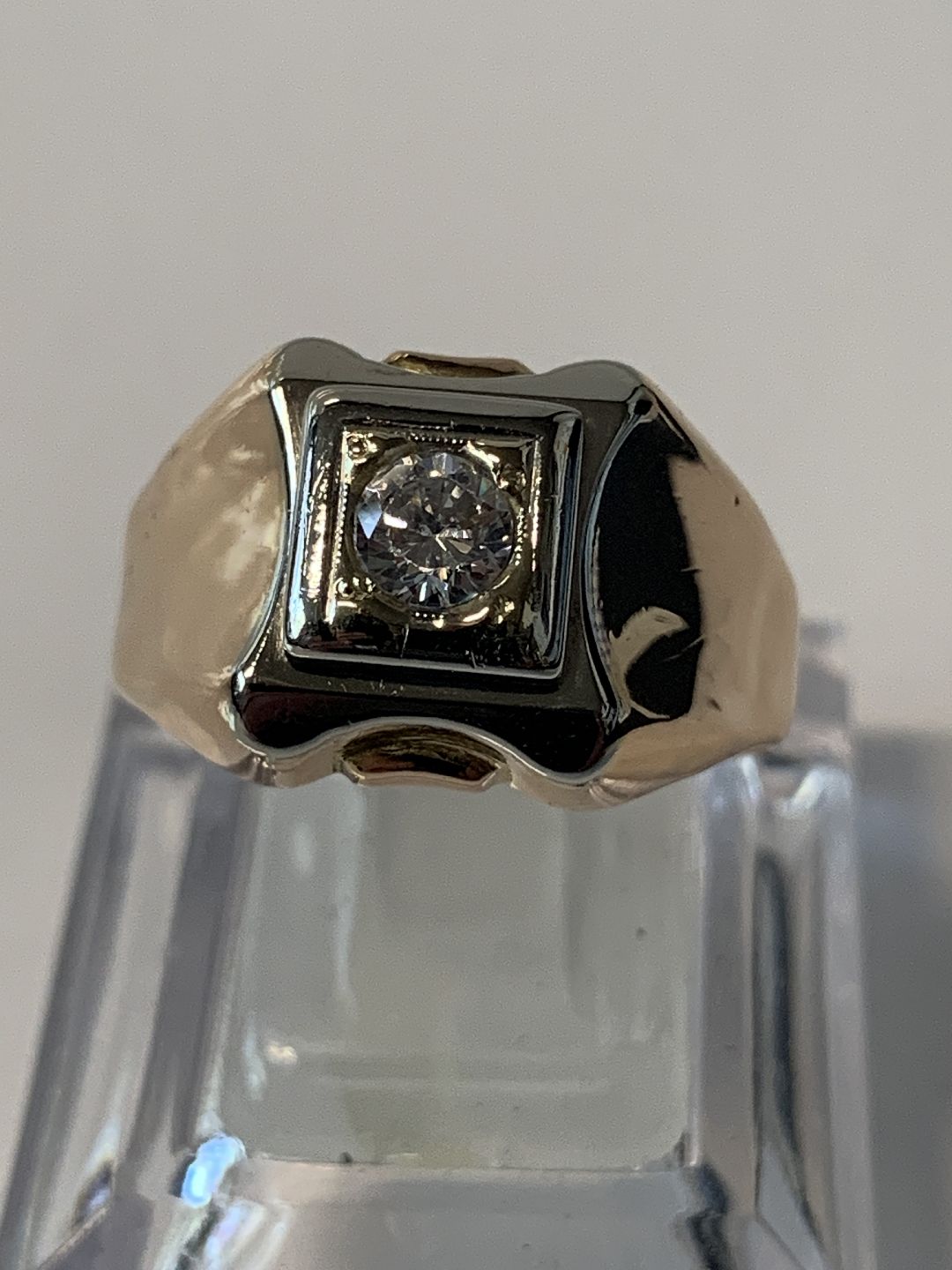 Men's ring with a clear stone, in 18 carat Red / white gold.