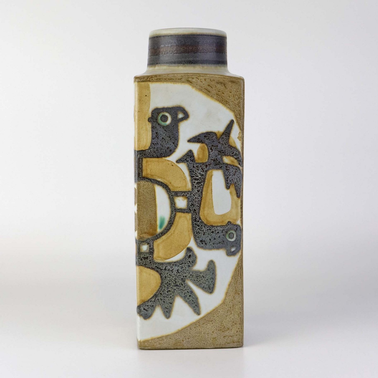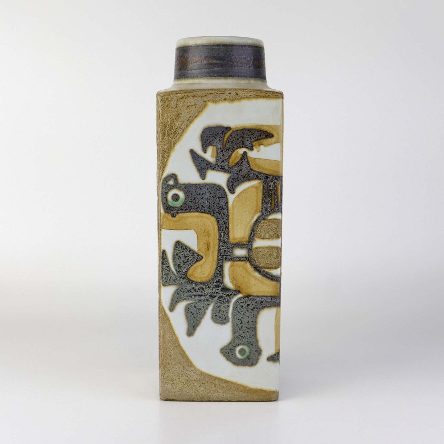 Vase i fajance fra serien Baca med motiv af fabeldyr i brunlige nuancer. Nr. 805/3259