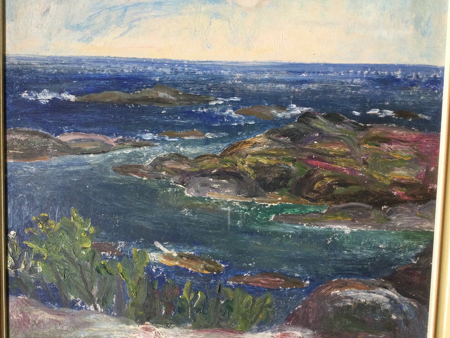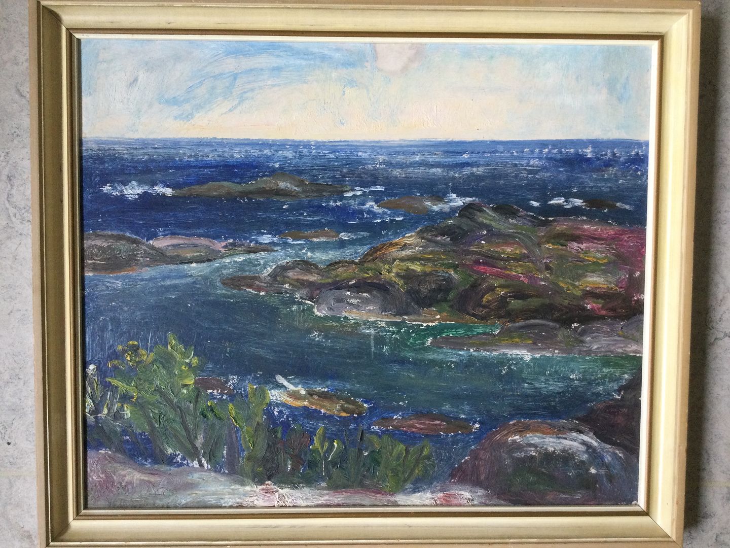 Maleri af Albert Haugsand 1947 - Parti fra Sørlandskysten - Norge.