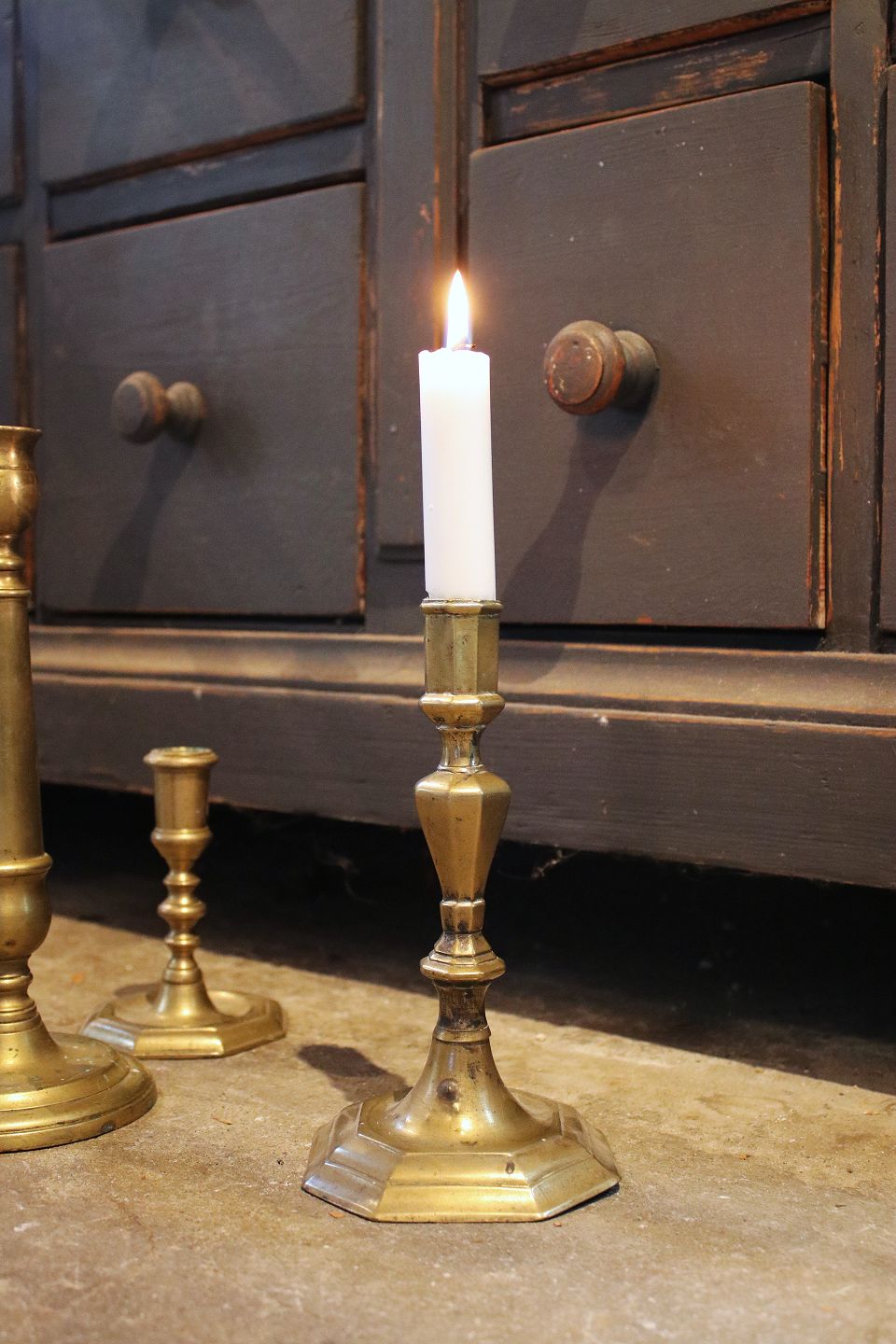 Et par 1700 tals lysestager i messing med en rigtig fin patina.