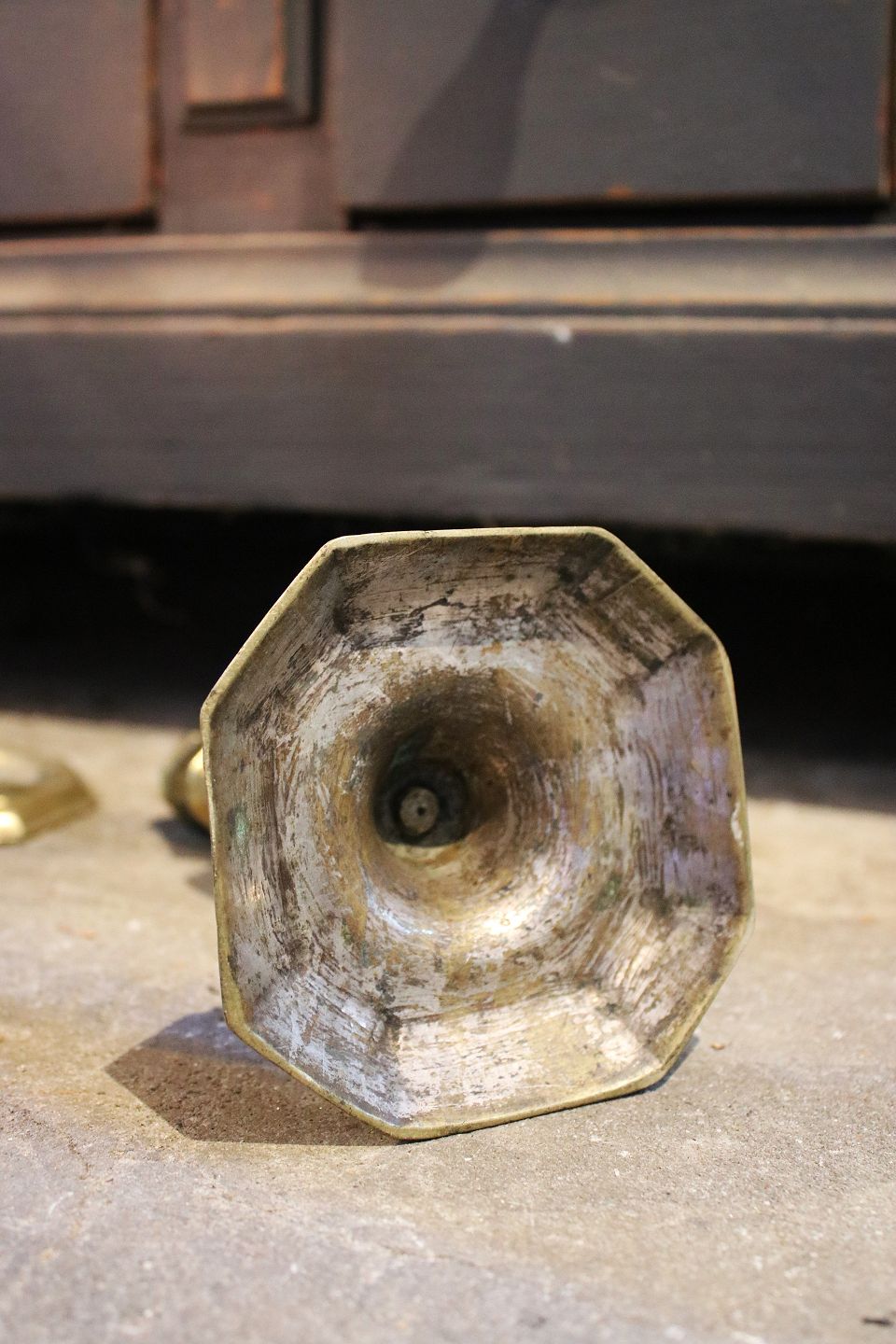Et par 1700 tals lysestager i messing med en rigtig fin patina...