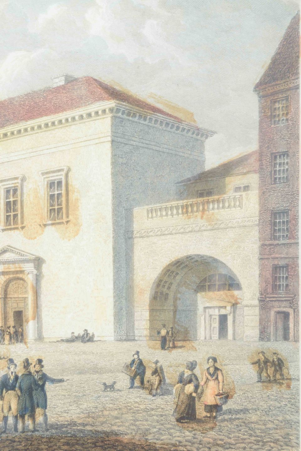Et stemningsfuldt prospekt af Københavns rådhus (det tidligere klassicistiske rådhus, beliggende på Nytorv, opført 1803–1815 efter tegninger af arkitekt C. F. Hansen, nedrevet i 1890’erne). Motivet viser pladsen foran rådhuset med mennesker i tidens dragter, hestevogne og et levende bymiljø. Værket er tegnet af den engelske officer og rejsende Lieutenant Colonel Robert Batty (1789–1848), kendt for sine detaljerede prospekter fra europæiske byer, og graveret af E. L. Roberts.