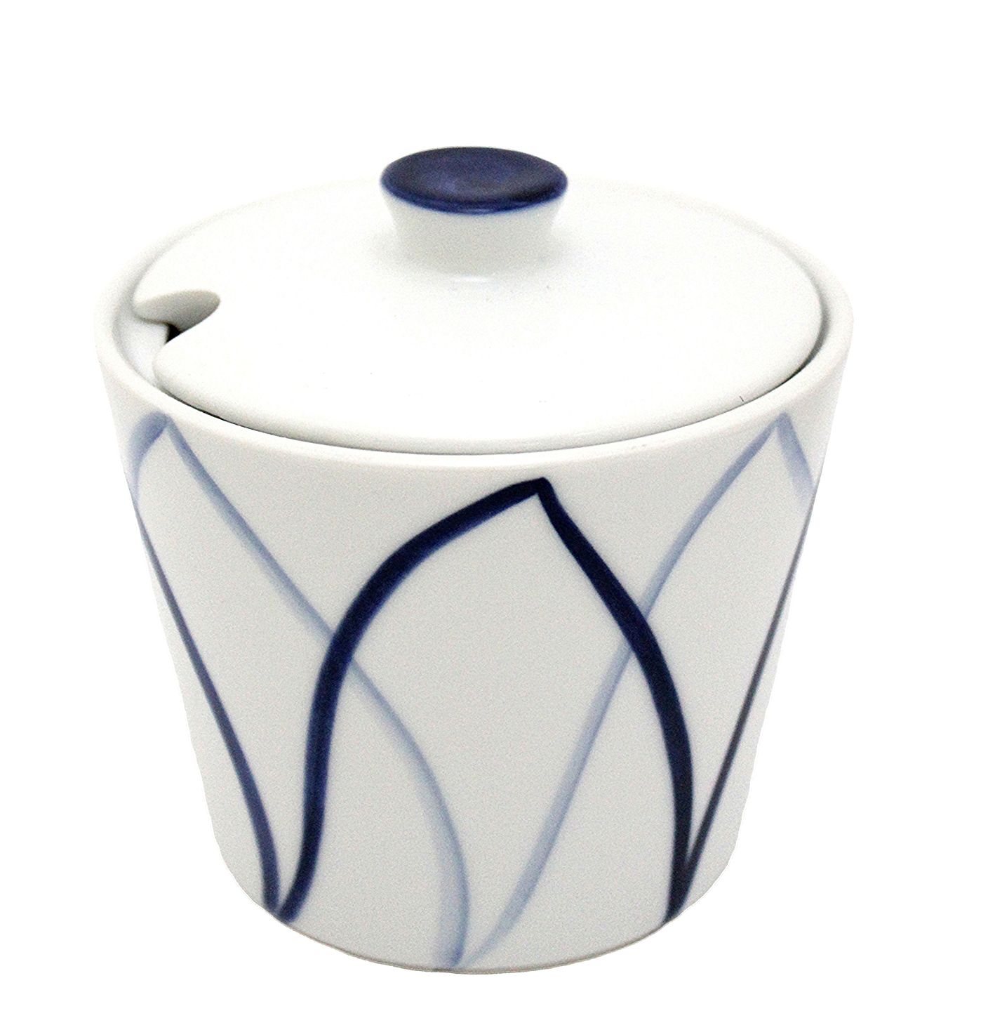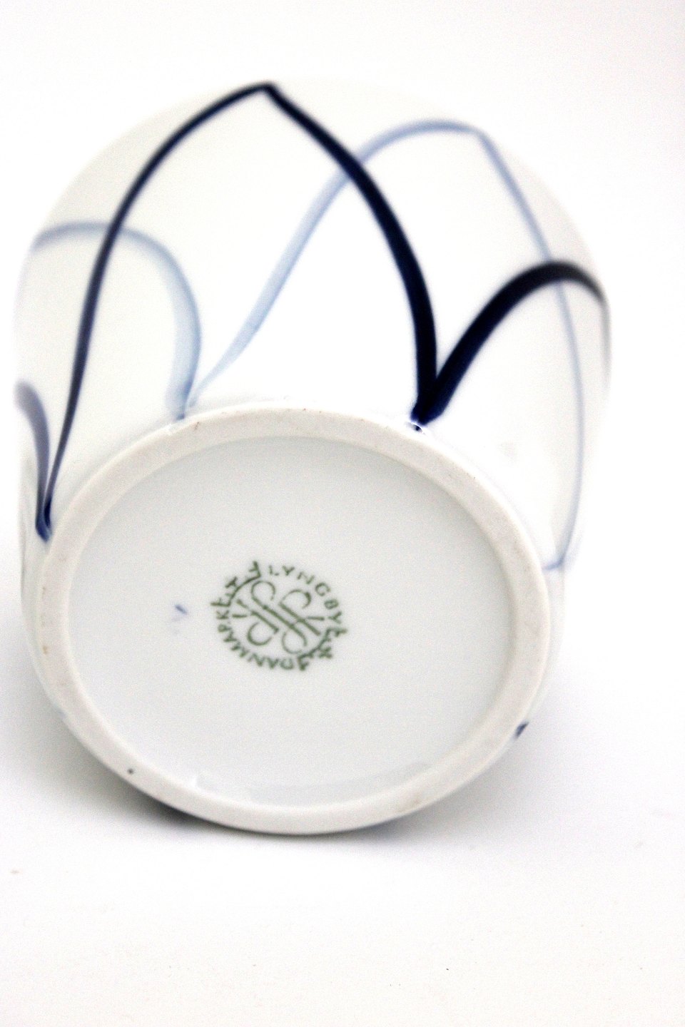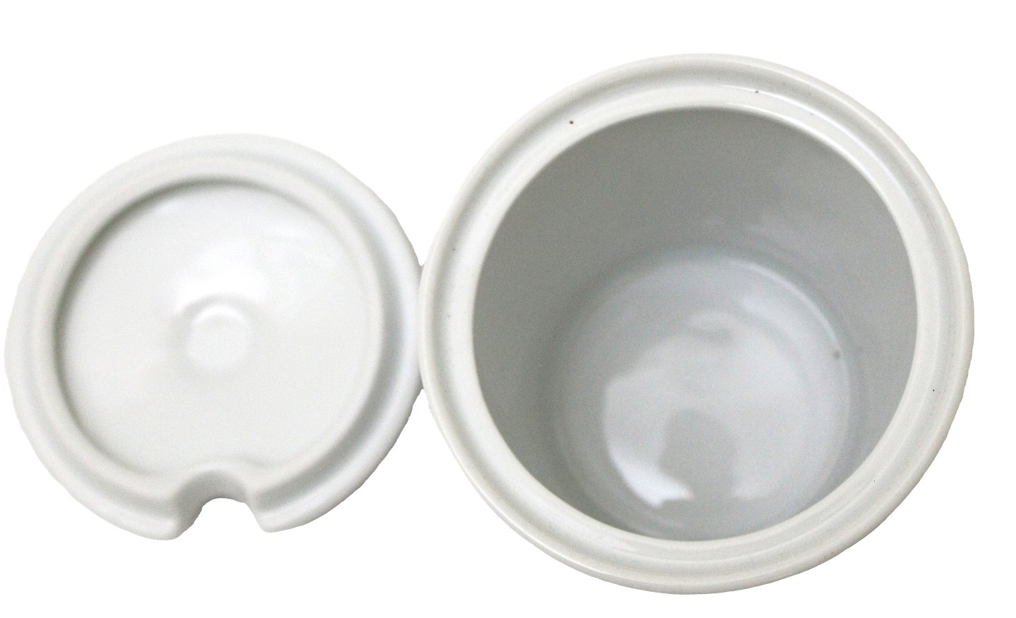 Dan-ild Lyngby, Harlekin/Blå flamme. Marmelade krukke med låg. Design Axel Brüel i 1958. Ildfast porcelæn blev solgt under sloganet fra ild til bord.