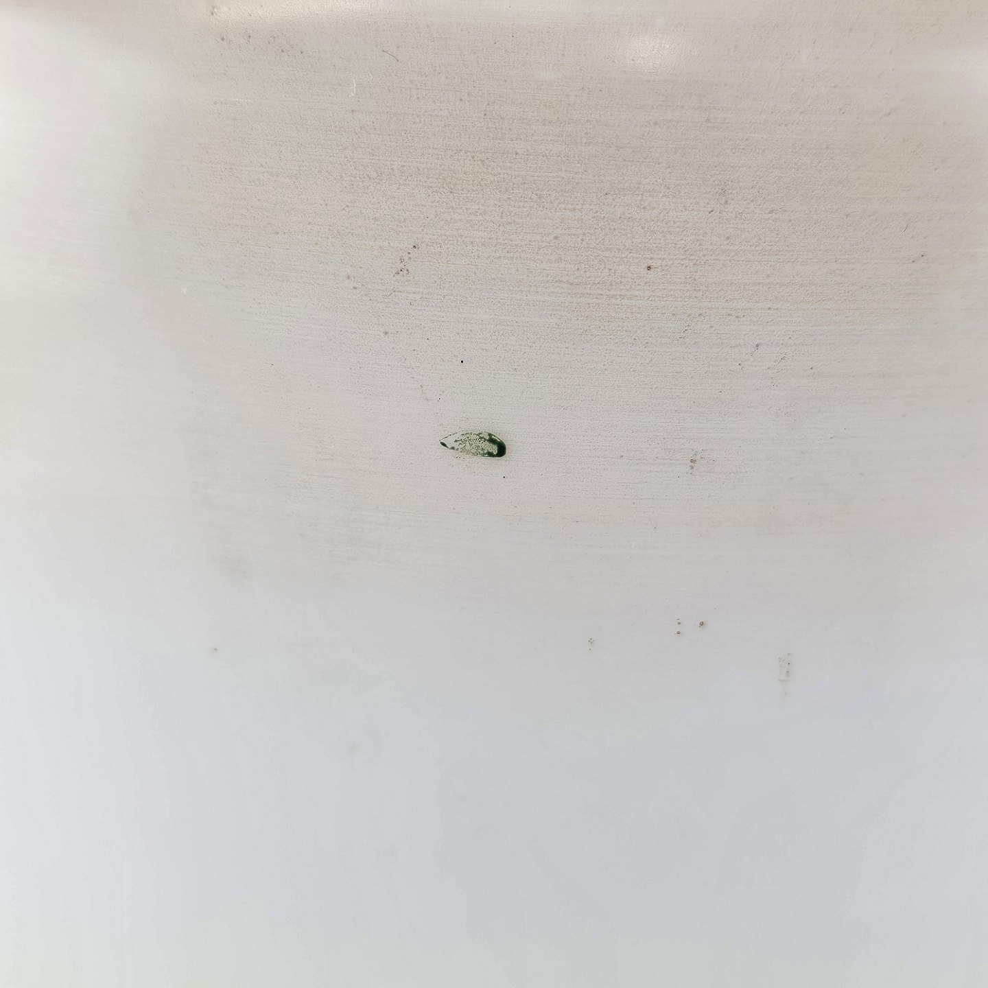 Håndmalet opalglas krukke med låg og håndtag, dekoreret med blomstermotiv. Låg og hank lavet af metal