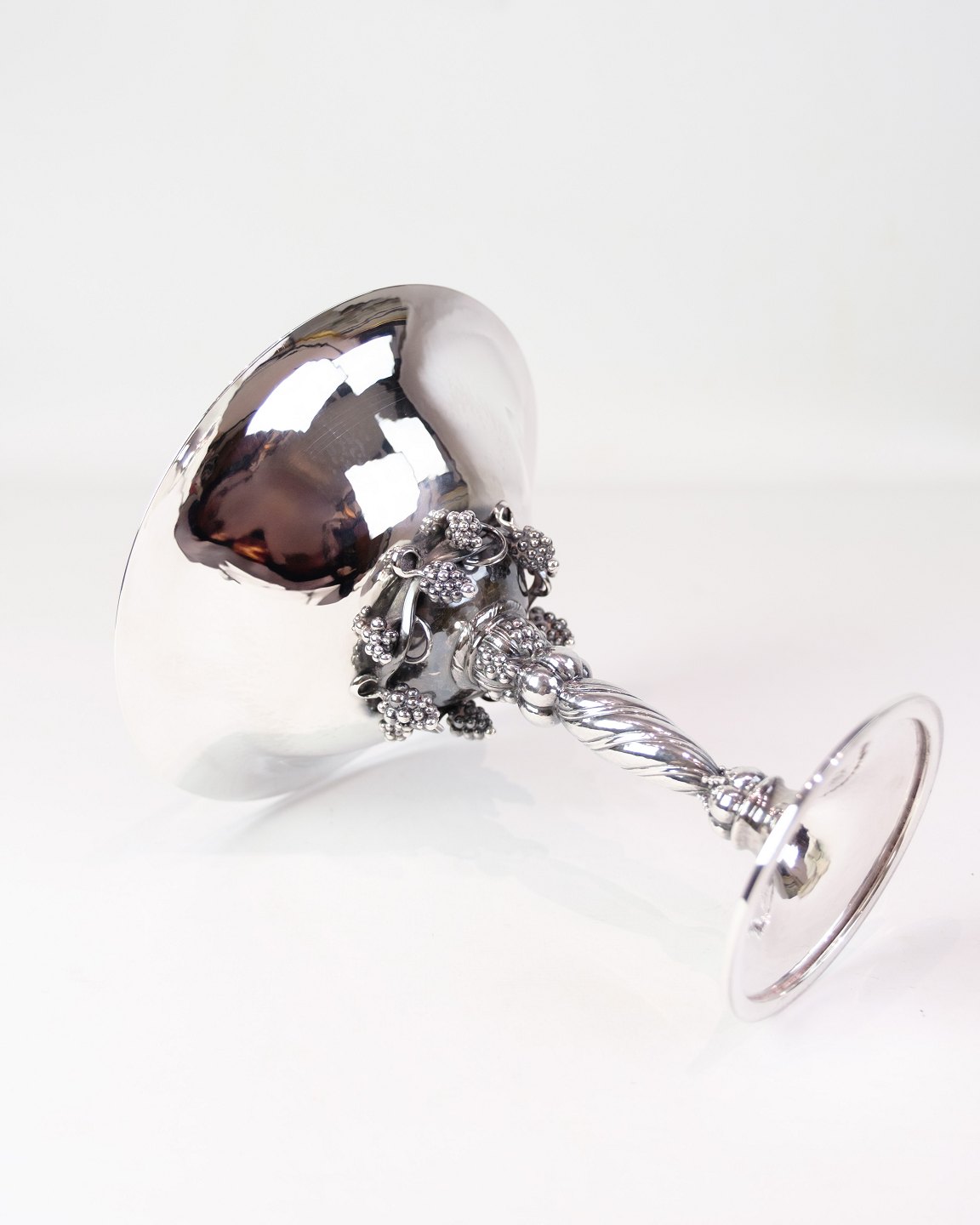 Large sterling silver centerpiece from Georg Jensen, adorned with the iconic grape decoration. Designed by Georg Jensen in 1918, model no. 263 B. The centerpiece is one of the classic examples of Georg Jensen's early silver design, where nature-inspired motifs are combined with elegant design.