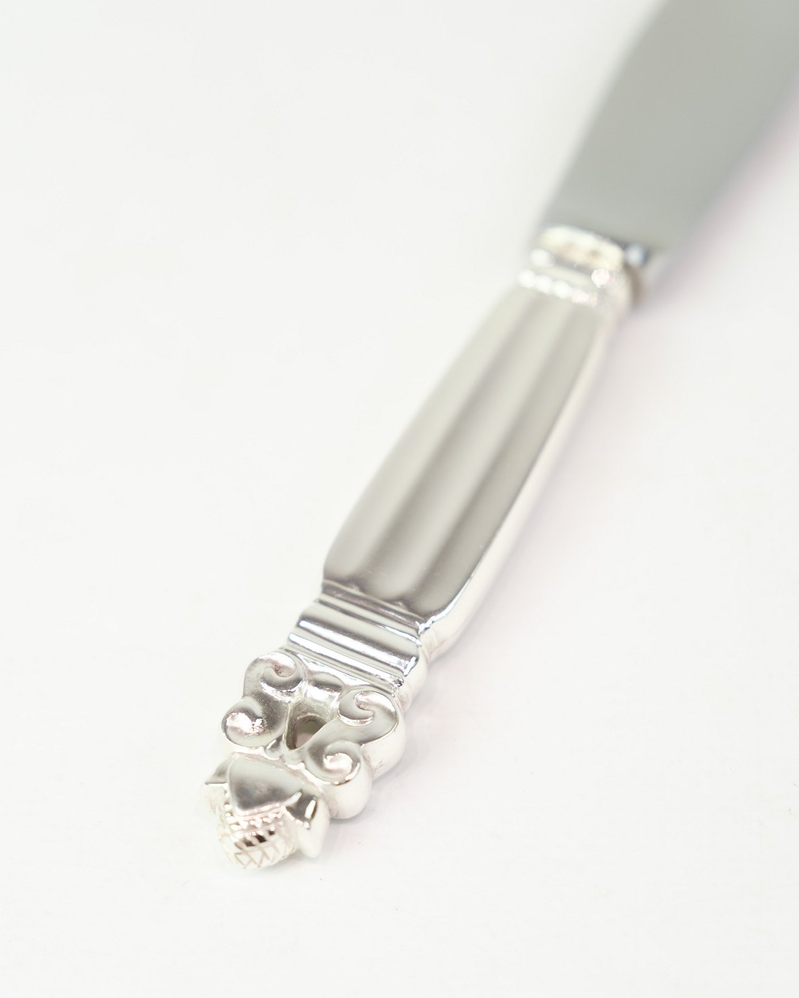 Georg Jensen silver lunch knife, King pattern. Designed by Johan Rohde in 1915. Length 20cm. Classic Danish silverwork.