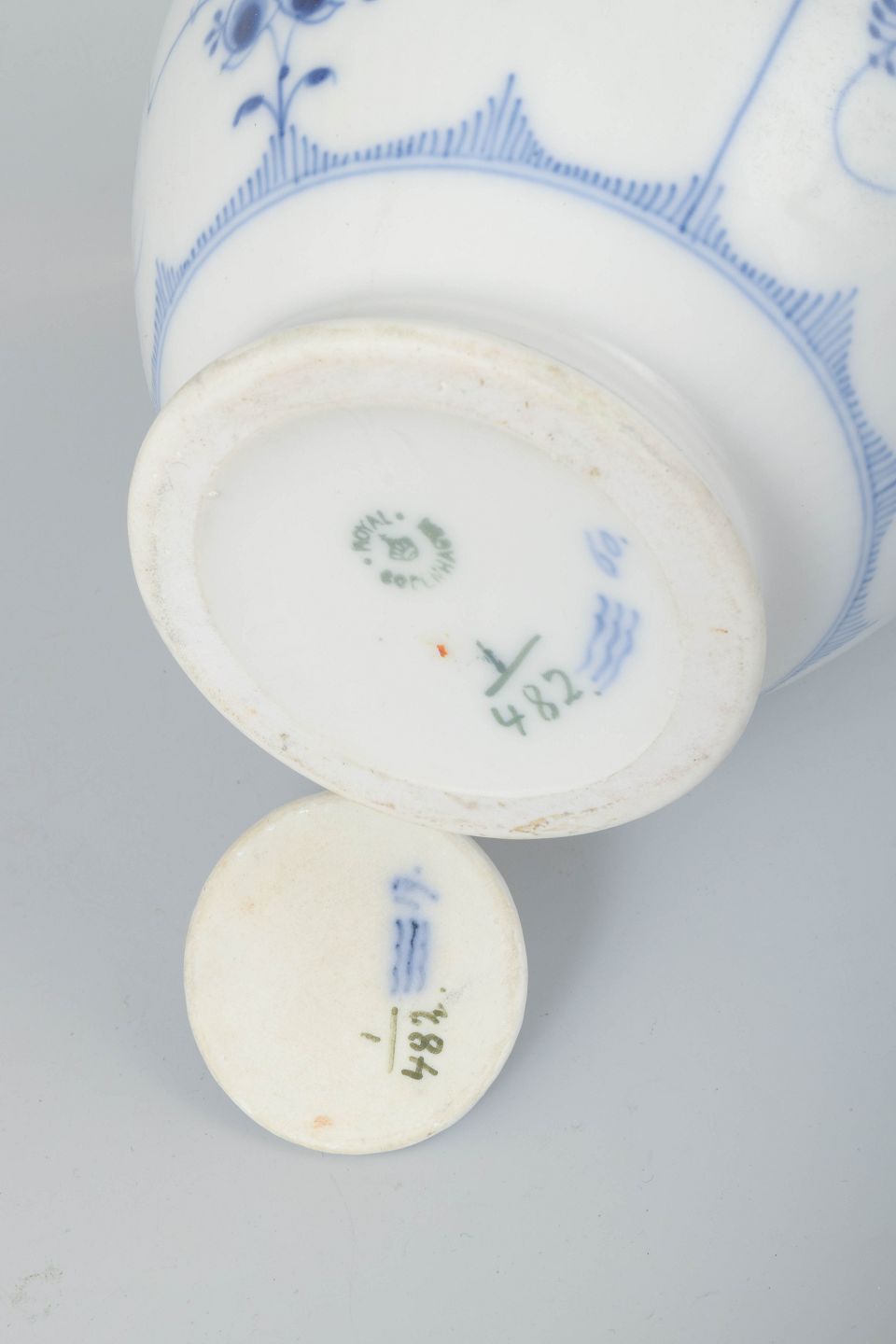 Signature / mark: Royal Copenhagen waves (first quality), factory stamp, shape no. 1/482, painter’s no. 60 (jug) and 17 (lid)