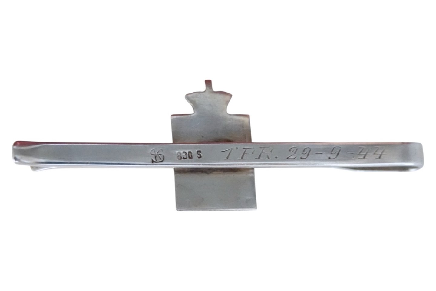 Kings Mark tie clip in silver. It was put together of two pieces. There is an engraving on the back from 1944.