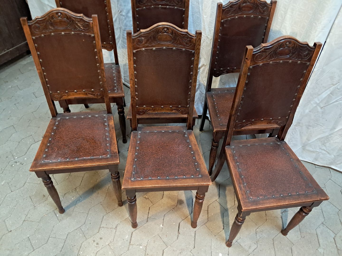 6 Stole i massivt egetræ, fra 1920erne.
