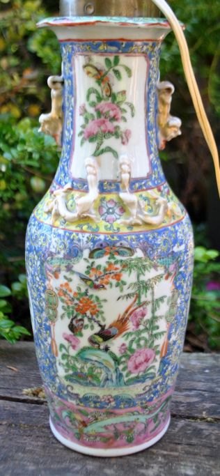 Kinesisk vase - omgjort til lampe, 19. årh. Famille rose.