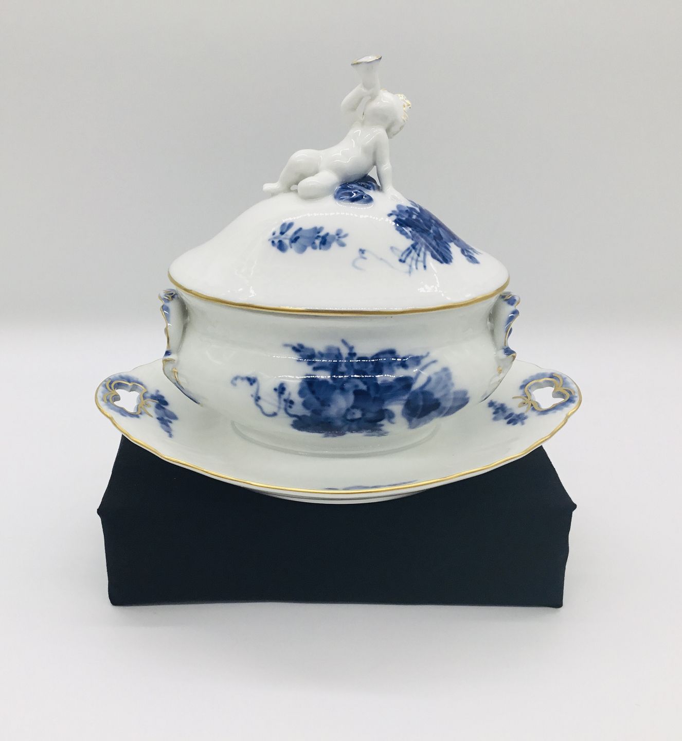 Royal Copenhagen, Blå Blomst svejfet med guld, sjælden sovsekande på