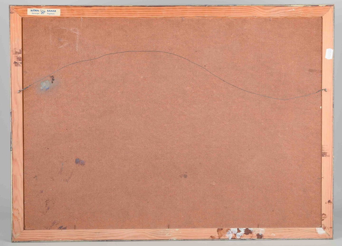 This expressive work emerges as a striking manifestation of the post-war Scandinavian modernist idiom, in which spontaneous brushstrokes, fluid contours, and contrasting chromatic fields generate a visual dynamism that simultaneously suggests an inner psychological intensity and a conscious emancipation from naturalistic tradition. The dripping black lines accentuate the dramatic tenor of the composition, underscoring its dual character as both improvisational gesture and carefully considered artistic statement.