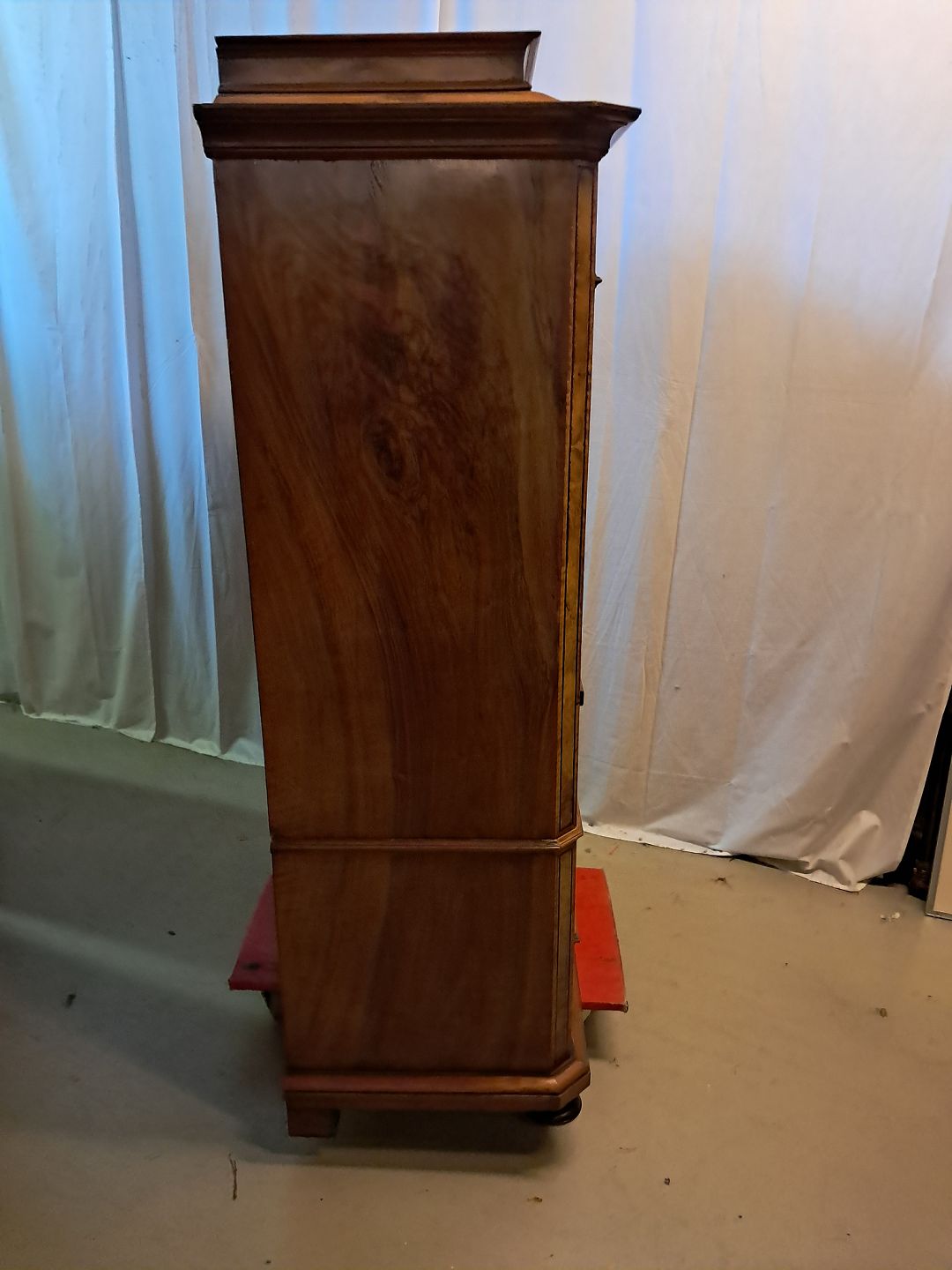 Sølvtøjsskab i fineret nødetræ og mahogni, fra 1900erne.
