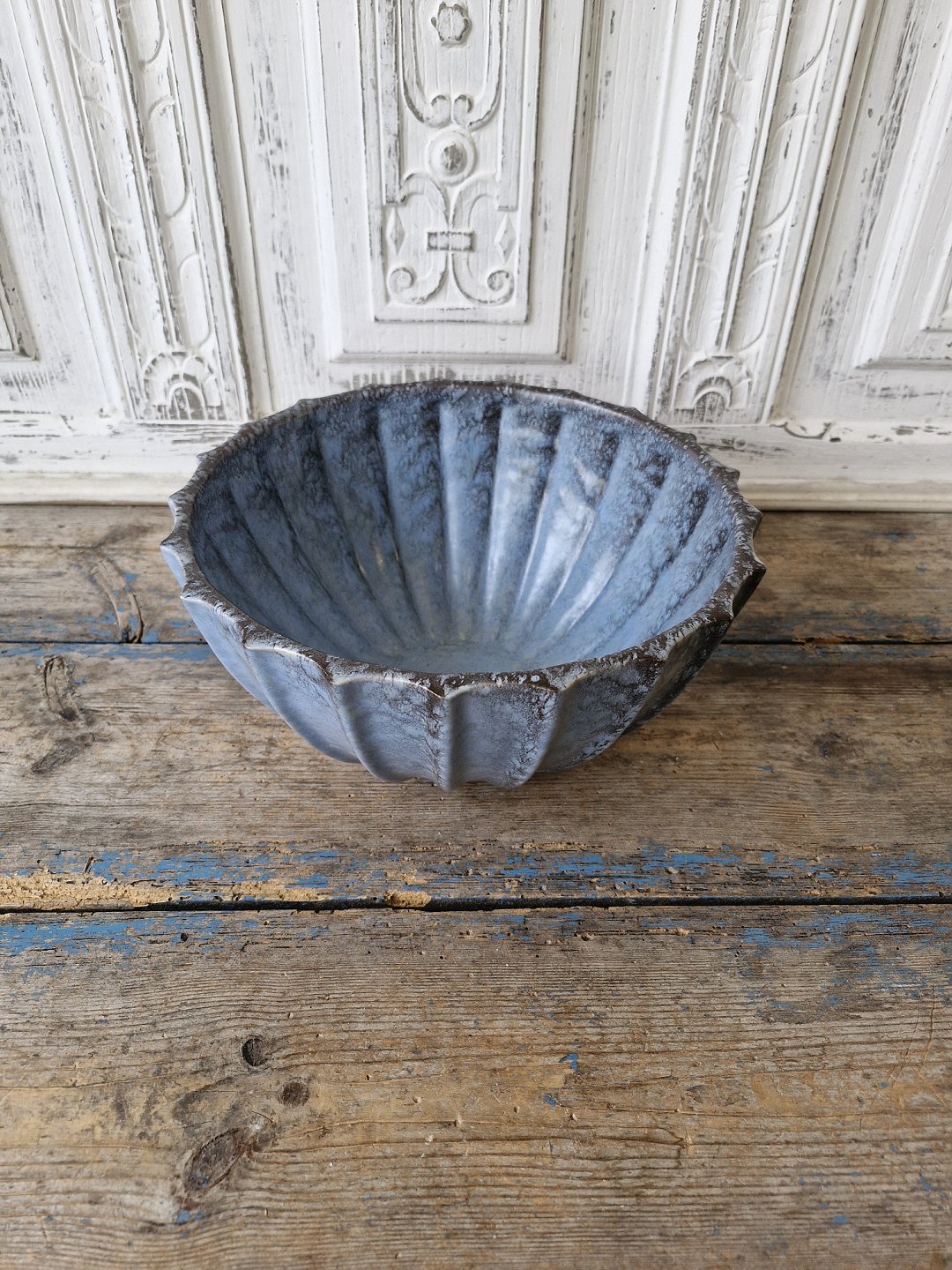 Michael Andersen stor riflet skål med smuk blå glasur