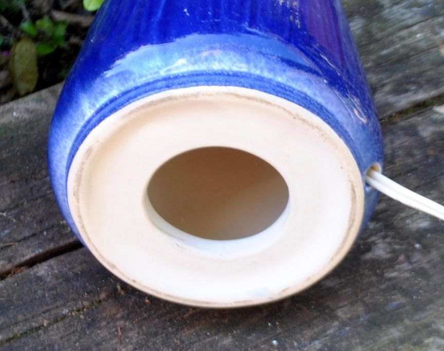 Ceramic table lamp with blue glaze, 20th century. Denmark. With flutes. Unstamped. Height without electrical installation: 37 cm. With electrical installation: 58 cm. Hole drilled in lamp for wire.